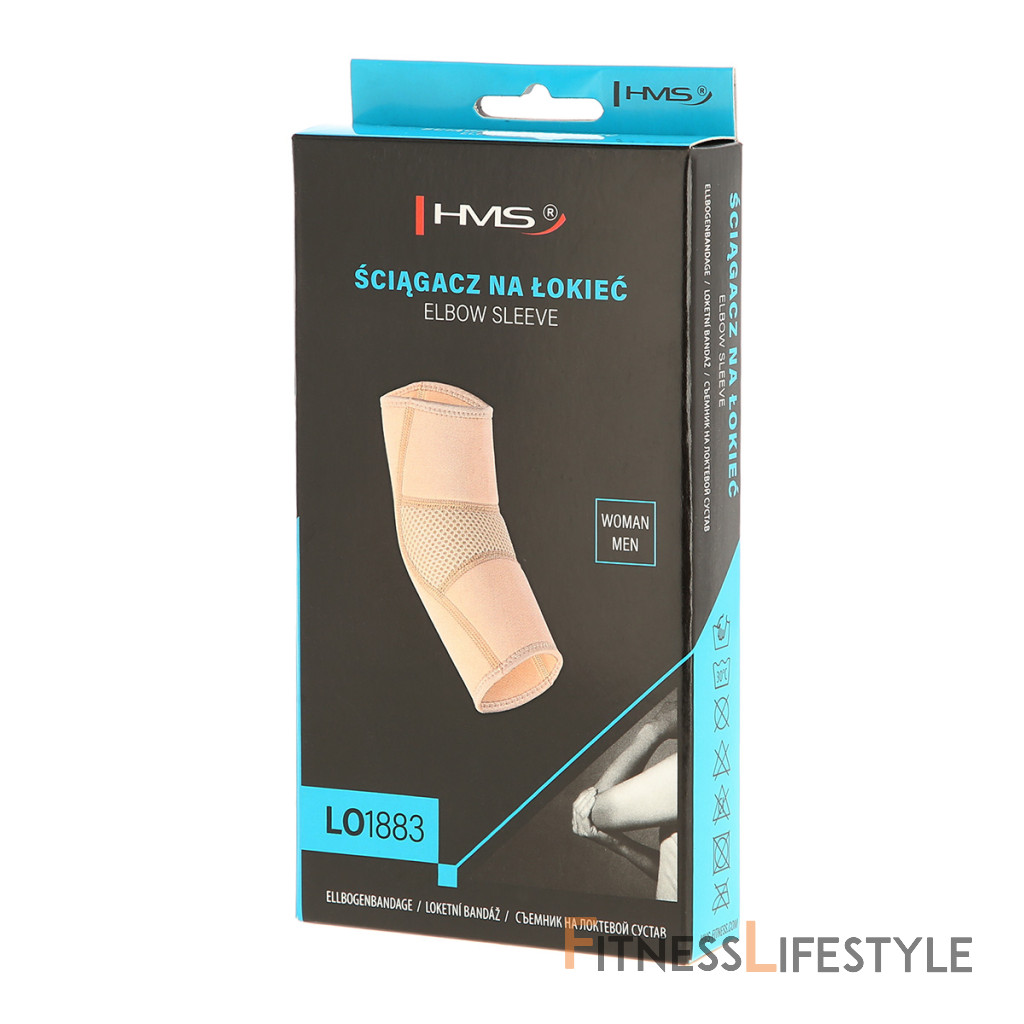 HMS LO1883 je bandáž pre spevnenie lakťa, bez obmedzenia pohybu. Materiál je kombináciou neoprénu a polyesteru, vďaka tomu je pružný a dokonale priľne k pokožke. Sťahovadlo LO1883 nájde uplatnenie ako prevencia zranenia, zároveň napomáha udržať lakeť v teple a podporuje prúdenie krvi, to urýchľuje rekonvalescenciu, znižuje bolestivosť a predchádza kŕčom a drevenenia paže.
