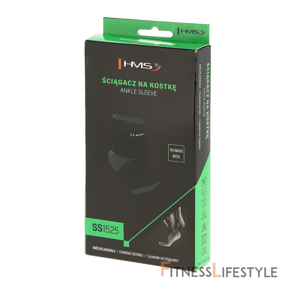 HMS SS1525 je bandáž, alebo tiež sťahovadlo na členok. Produkt sa používa na spevnenie členku bez výrazného obmedzenia jeho pohybu. SS1525 je vyrobený z kombinácie nylonu a elastanu, vďaka výslednému materiálu perfektne priľne k pokožke a tiež odvádza pot na svoj povrch.