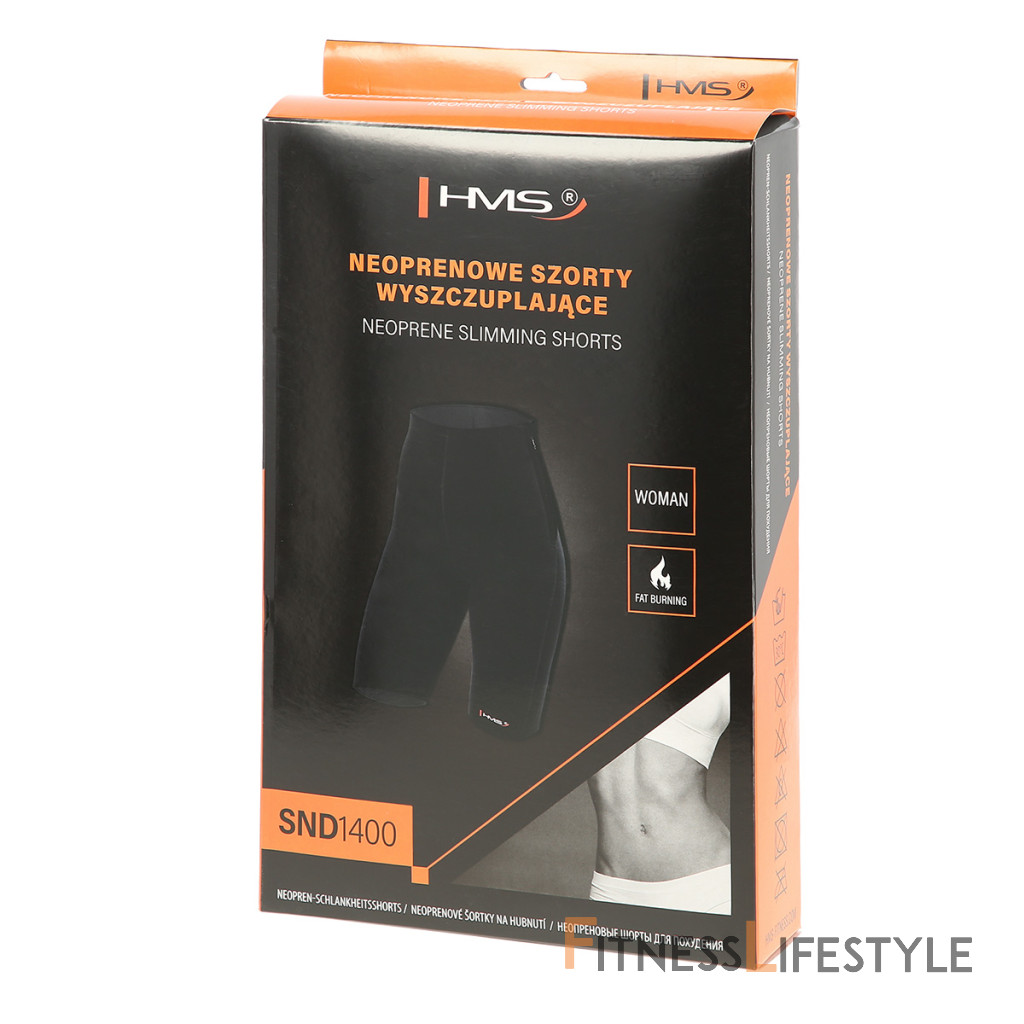 HMS SND1400 sú neoprénové, zoštíhľujúce šortky s vysokým pásom, ktoré vďaka neoprénu zadržujú telesné teplo a urýchľujú spaľovanie tukových vankúšov stehien, bokov a brucha.