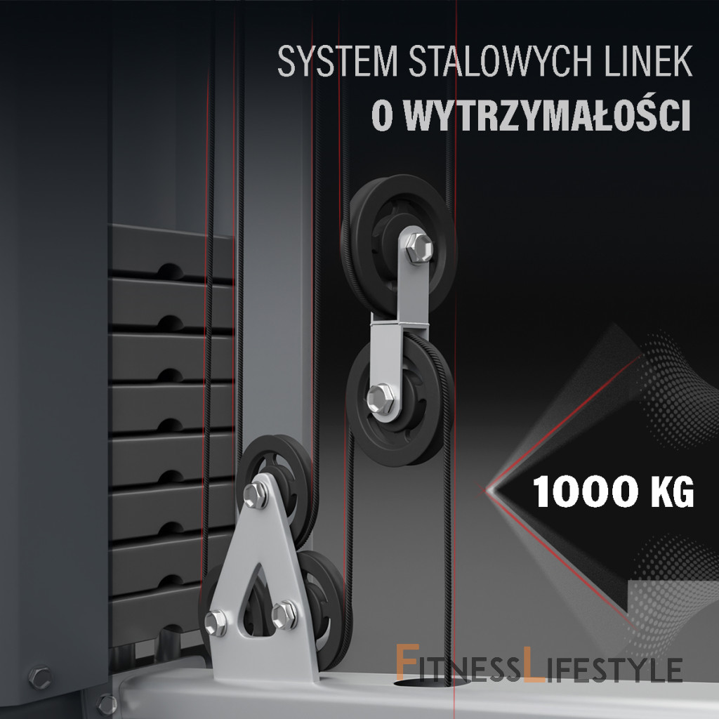 Posilňovacia veža Tytan 7 HMS je multifunkčný nástroj pre domáce cvičenie. Veža umožňuje bezpečné cvičenie rôznych svalových skupín ako v profesionálnom telocvični. Je ideálny pre ženy aj mužov, ktorí si chcú zlepšiť kondíciu, zlepšiť vzhľad postavy, zvýšiť a posilniť svalovú hmotu.
