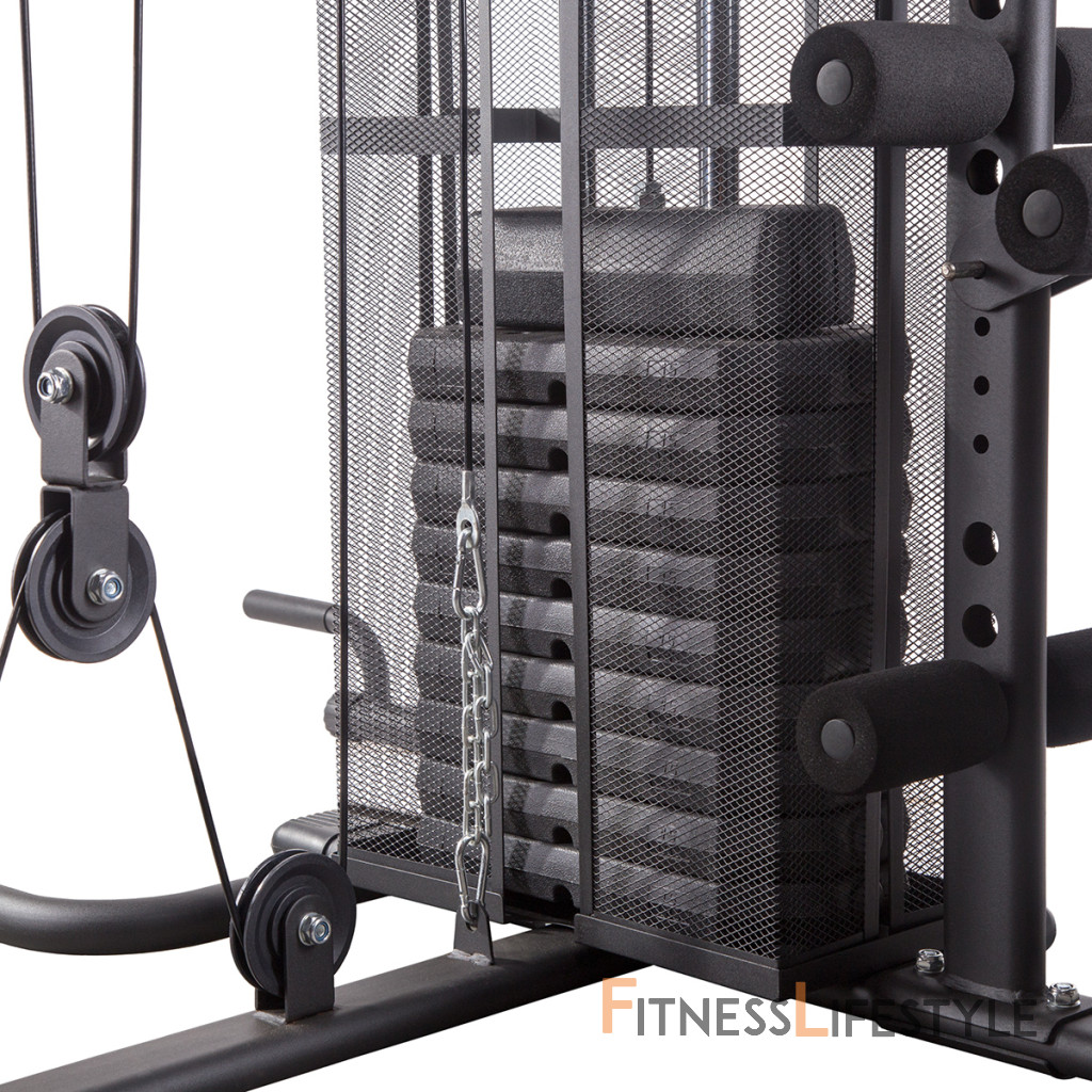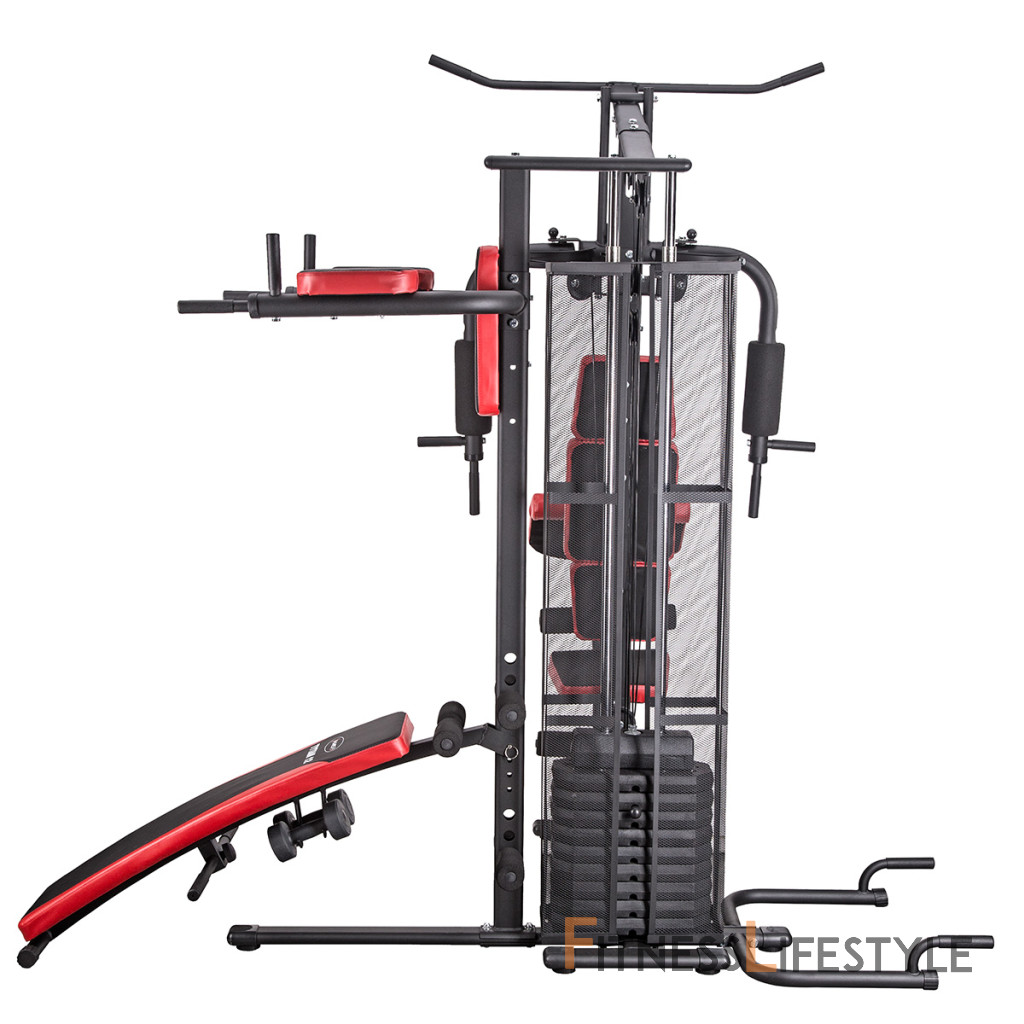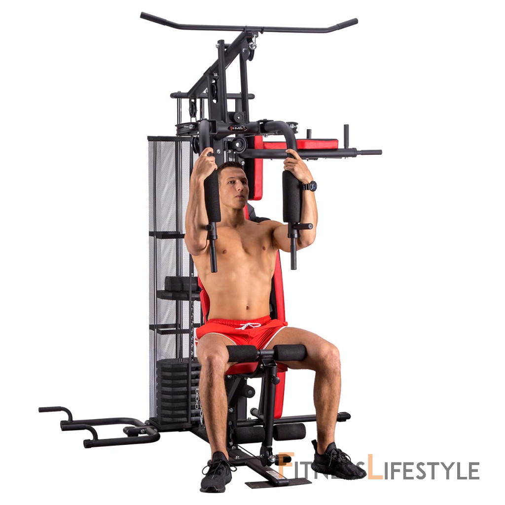 Sedáky a podpery veže HMS Tytan 12 sú vyrobené z vysokej vrstvy peny ukrytej pod extra pevným polstrovaním v modernom, carbonovom vzhľade. Hlavnú chrbtovú oporu tvoria 3 samostatné panely pre pevné s pohodlné frženie tela. Tytan 12 ponúka komplexný tréning takmer všetkých svalových skupín. Oceľová konštrukcia má nosnosť 110 kilogramov.