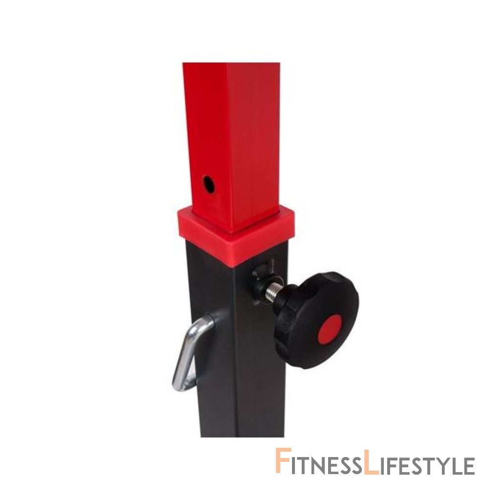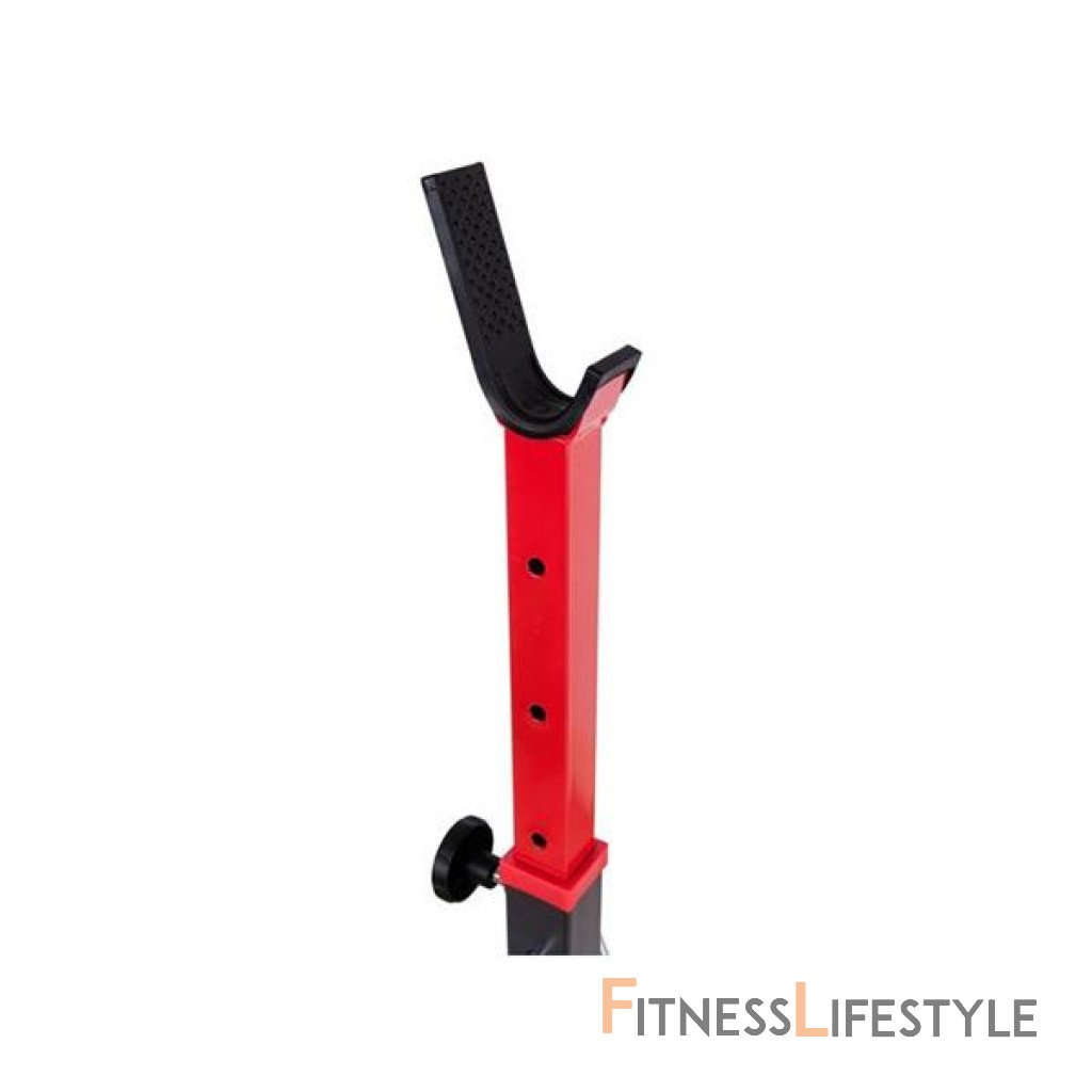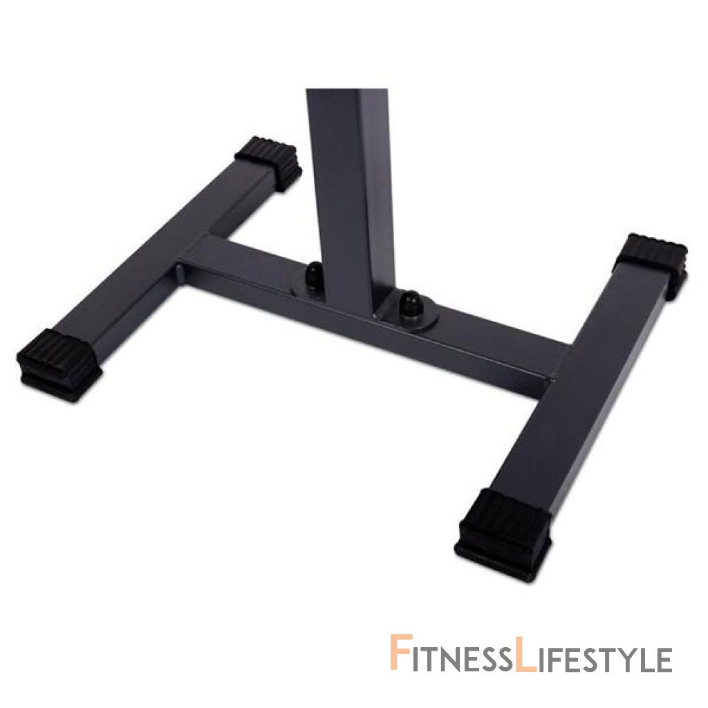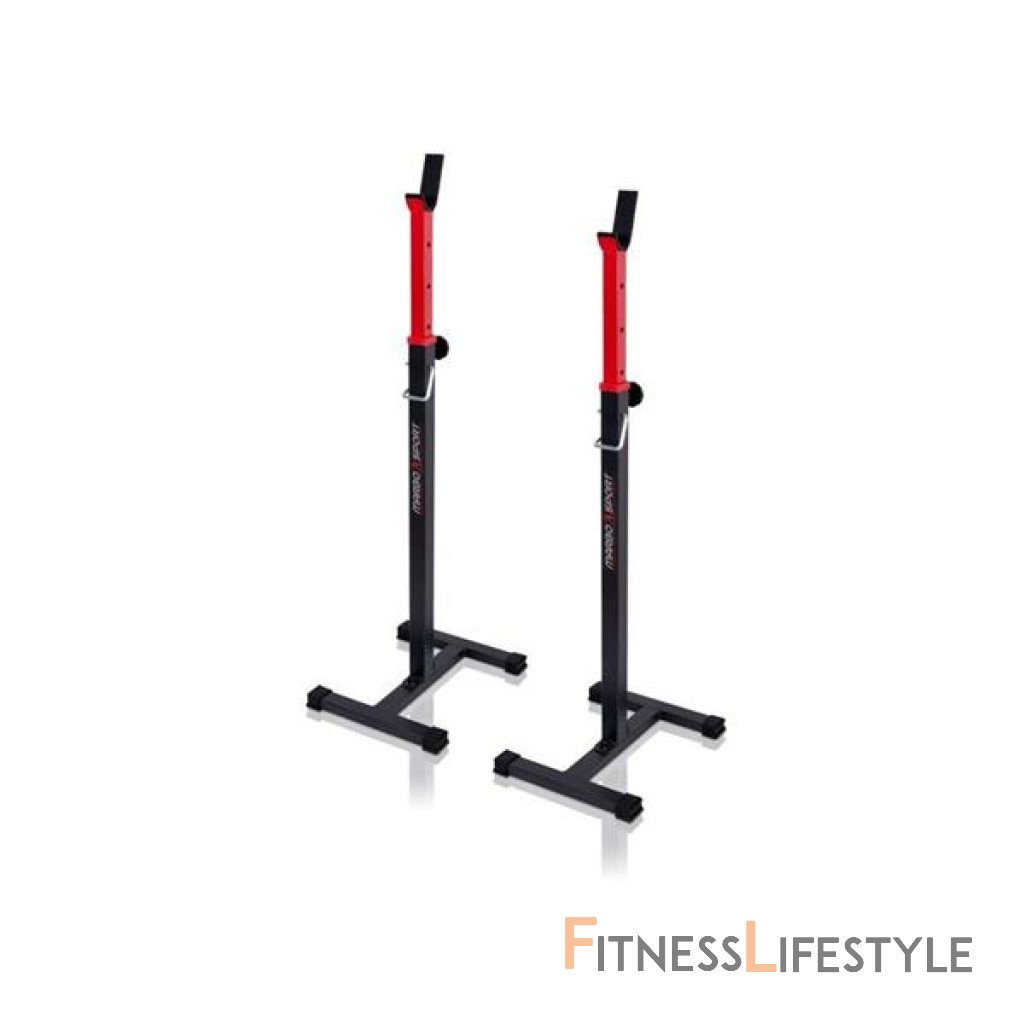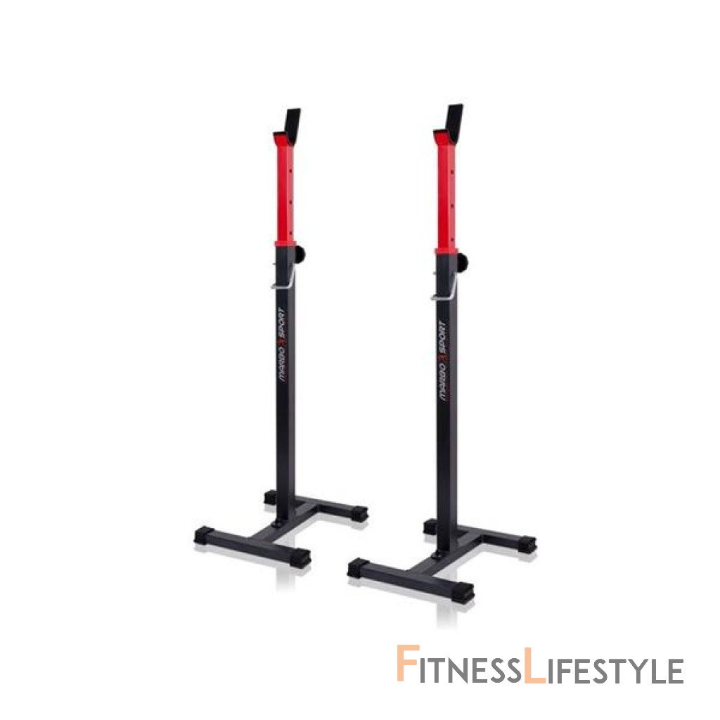 Stojany MARBO MS-S101 vyrobené v Poľsku s použitím ocele najvyššej kvality, ktorá zaisťuje bezpečnú nosnosť až 300 kg. Sú ideálnou voľbou pre tých, ktorí hľadajú trvanlivé a cenovo dostupné stojany. Vďaka nastavenie výšky (rozsah 112 až 182 cm), môžu byť použité samostatne alebo ako externý stojany počas cvičenia na lavici.Promyšlená konštrukcia zaisťuje stabilitu a bezpečnosť pri tréninku.Komfort zaisťujú pogumované spodné konce pre lepšiu stabilitu.