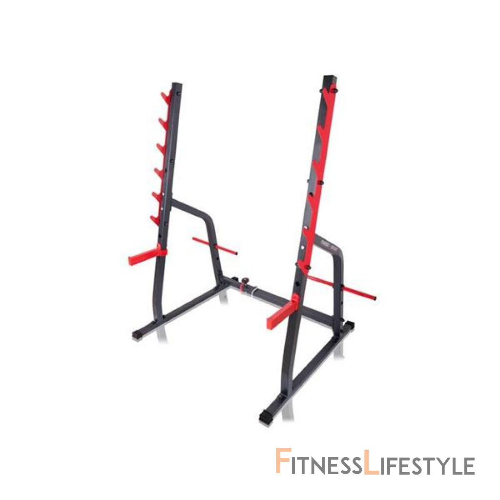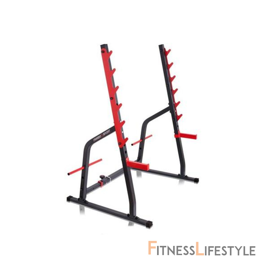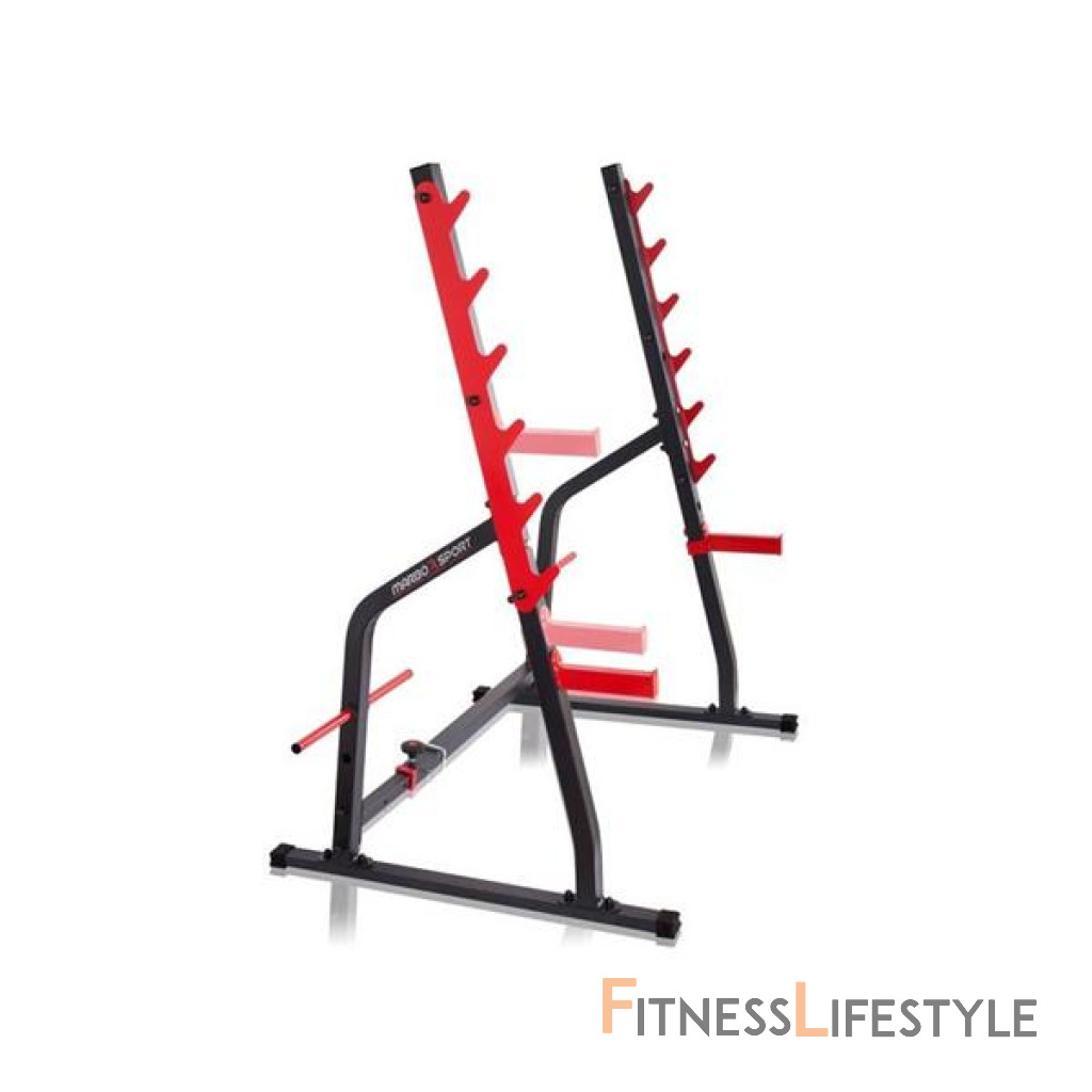 Stojany s istením známej značky MARBO MS-S107 sú vyrobené z veľmi kvalitnej ocele, ktorá umožňuje bezpečné zaťaženie 300 kg. Profil konštrukcia je 50x50x2mm. Nastavenie zarážky je možné v troch pozíciách. Nastavenie rozteče týchto troch pozícií - 100cm, 110cm a 120cm.Navíc vďaka troch stupňovej regulácii šírky tohto zariadenia, ideálne dopasuje dĺžku Vašej činky