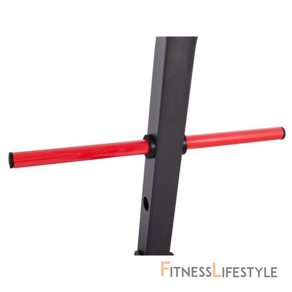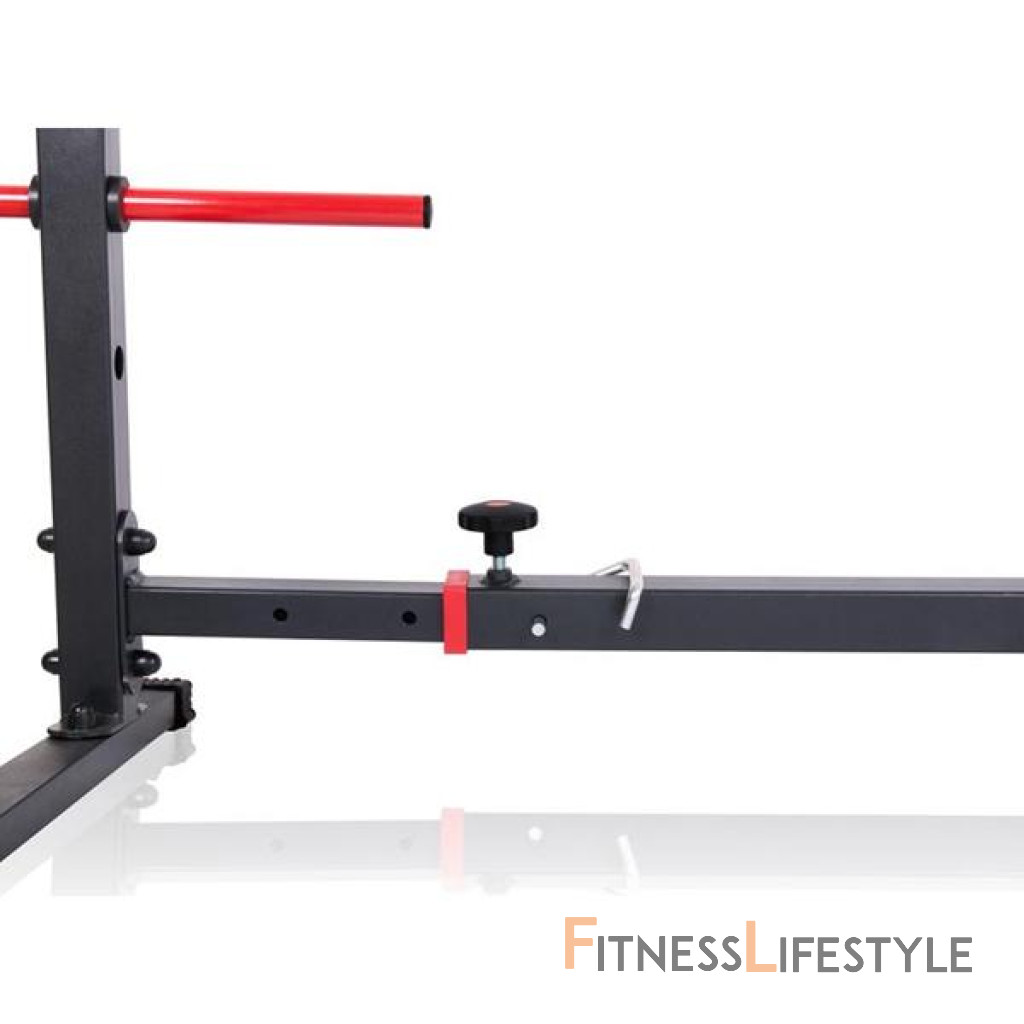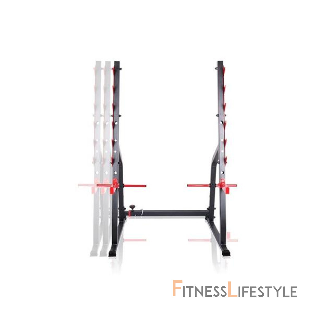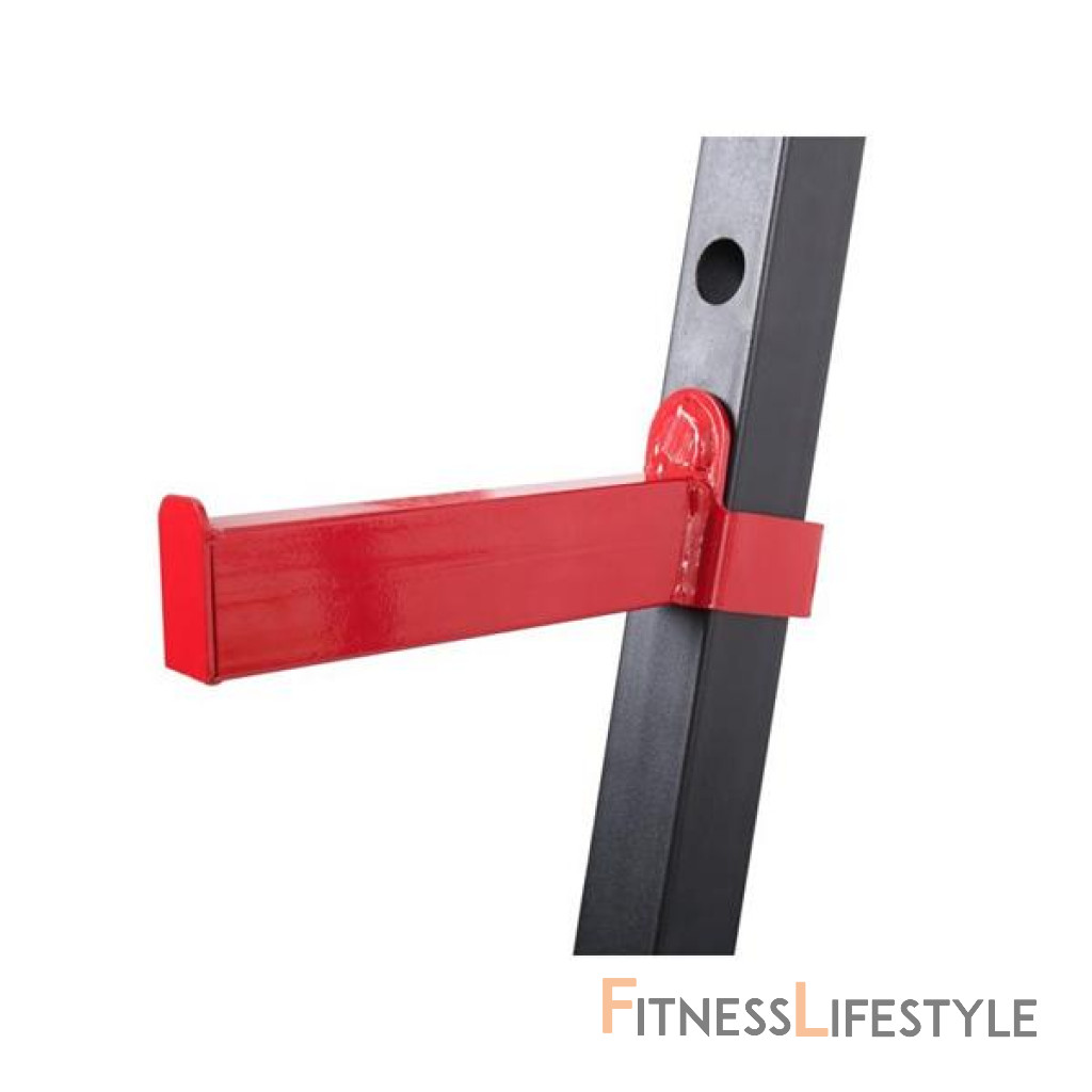 Stojany s istením známej značky MARBO MS-S107 sú vyrobené z veľmi kvalitnej ocele, ktorá umožňuje bezpečné zaťaženie 300 kg. Profil konštrukcia je 50x50x2mm. Nastavenie zarážky je možné v troch pozíciách. Nastavenie rozteče týchto troch pozícií - 100cm, 110cm a 120cm.Navíc vďaka troch stupňovej regulácii šírky tohto zariadenia, ideálne dopasuje dĺžku Vašej činky