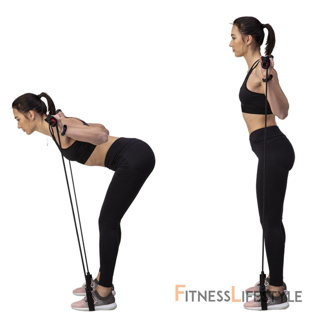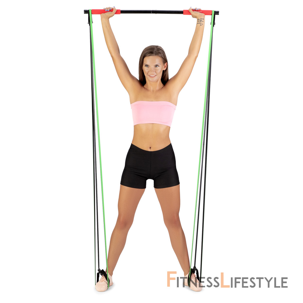 Ako príklad uvádzame cvik, kedy sa na tyč postavíte a expadnéry priťahujete smerom k telu. Prípadne si rukoväte expanderov nasadíme na chodidal a priťahujeme tyč.
