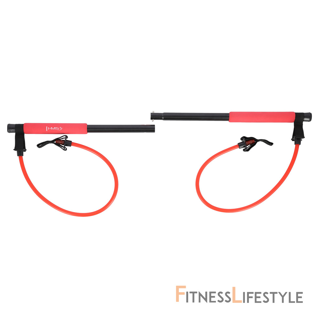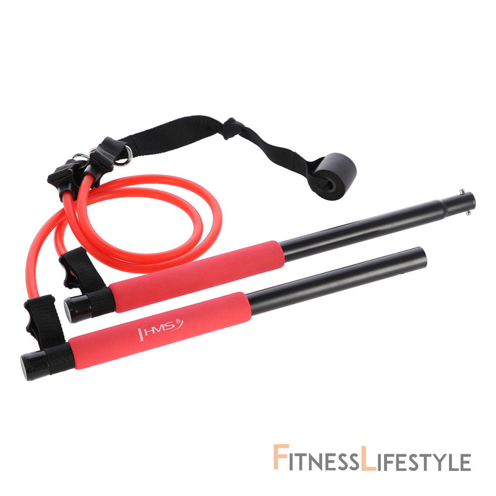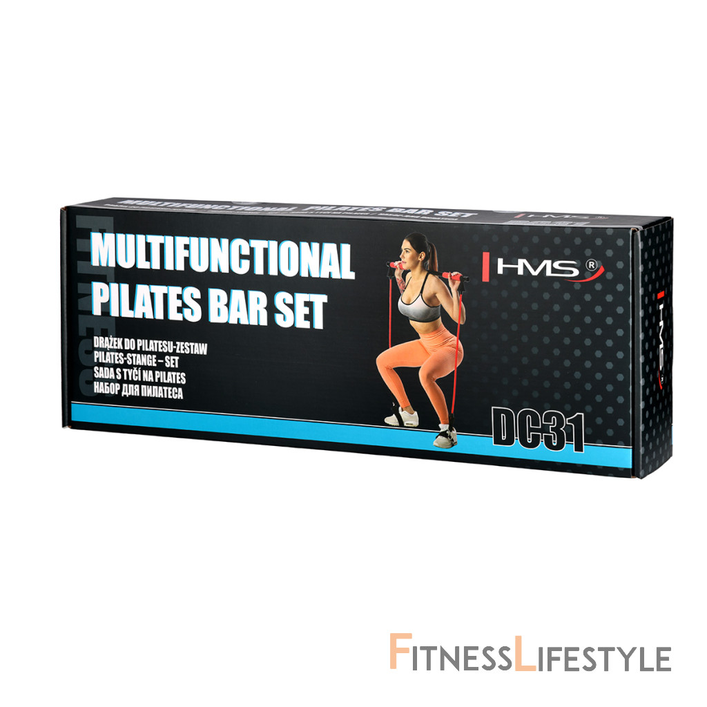 Zostava s tyčou na pilates HMS DC31 obsahuje sadu expanderov, zarážku za dvere a 2 páry popruhov, vďaka tomu umožňuje vykonávať širokú škálu cvikov. Do istej miery dokáže zastúpiť odporové gumy a gumy thera band. Model HMS DC31 nájde svoje uplatnenie pri akomkoľvek tréningu a pri rehabilitácii. Posilňovacia tyč sa využíva pre tréning horných a dolných svalových partií. Tréning s DC31 zvyšuje mobilitu a zlepšuje koordináciu.