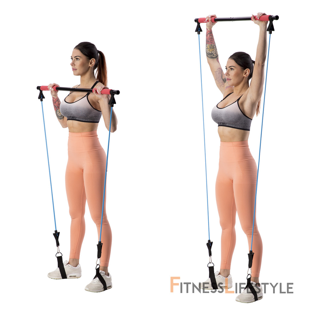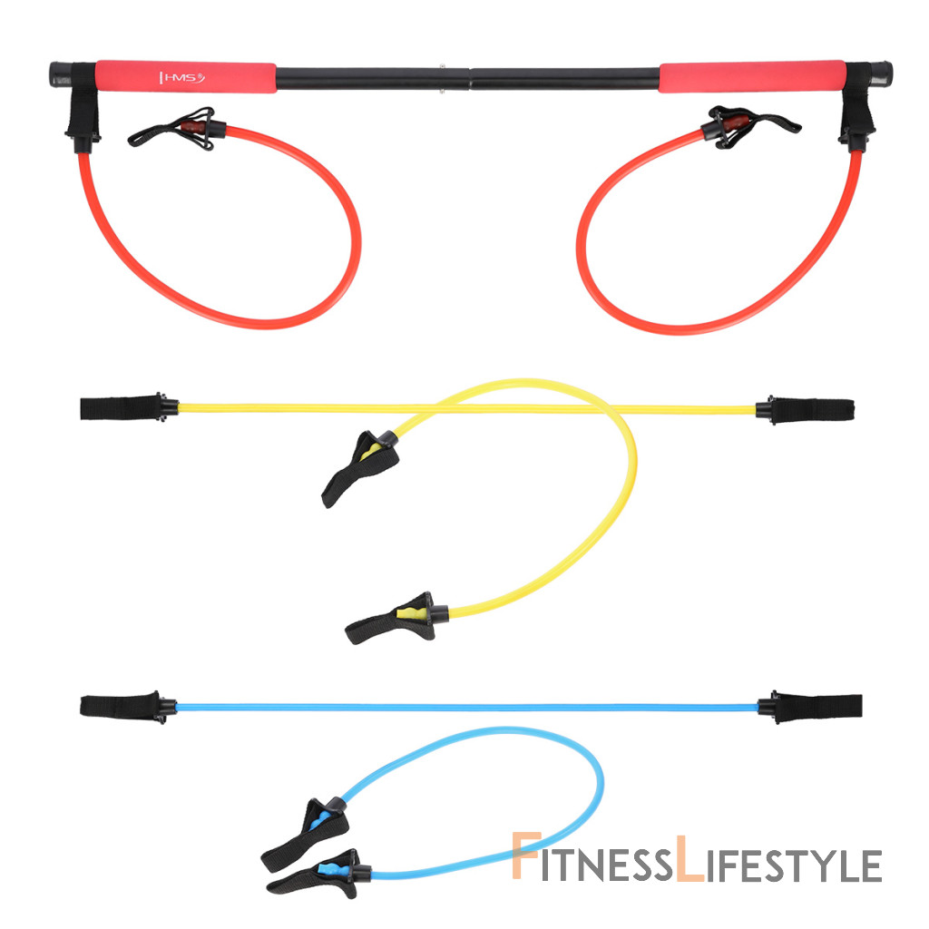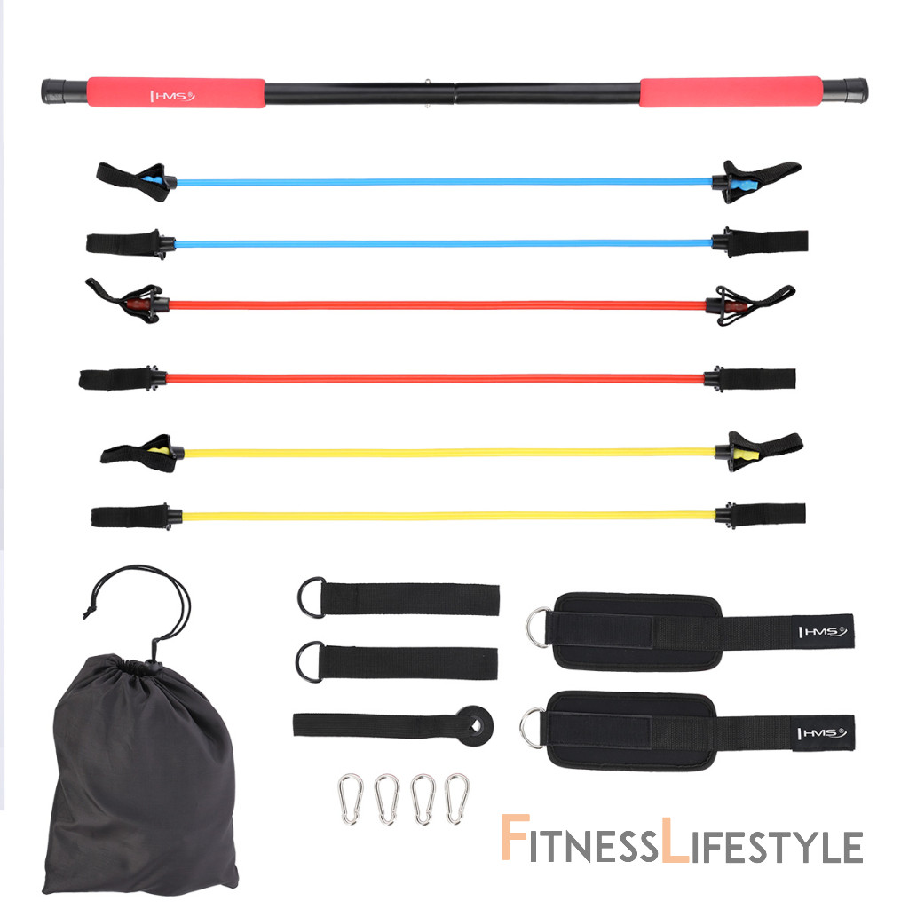 Zostava s tyčou na pilates HMS DC31 obsahuje sadu expanderov, zarážku za dvere a 2 páry popruhov, vďaka tomu umožňuje vykonávať širokú škálu cvikov. Do istej miery dokáže zastúpiť odporové gumy a gumy thera band. Model HMS DC31 nájde svoje uplatnenie pri akomkoľvek tréningu a pri rehabilitácii. Posilňovacia tyč sa využíva pre tréning horných a dolných svalových partií. Tréning s DC31 zvyšuje mobilitu a zlepšuje koordináciu.