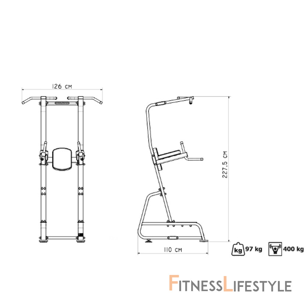 Stacionárny stojan s bralami a hrazdami MARBO MP-U210 je produkt zo série Professional, určený ako pre profesionálne, tak pre domáce precvičenie a posilnenie takmer celé vrchnej polovice tela. Komfortnému cvičenia napomáhajú penové úchyty, pohodlné polstrovanie, alebo naklonené podpery rúk. Robustný a stabilnú konštrukciu zaručuje hmotnosť 97 kg a použitý profil 80 x 40 x 3 mm. Horné hrazdy sú pochrómované a ich úchopovej časti sú opatrené hrubú, pevnú penou pre pocit istoty počas príťahov. Polstrovanie je vyrobené z pevnej, umelej kože dvojito prešité pevnou niťou značky Coats. Oporu zaisťuje 3 mm hrubá oceľová doska. Nášľapy sú vyrobené z vrúbkované, masívne oceľové dosky.