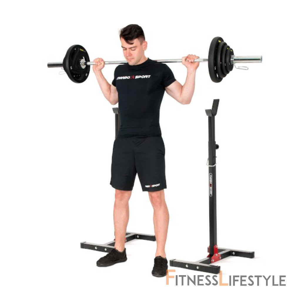 Stojany MARBO MH-S201 vyrobené v Poľsku s použitím ocele najvyššej kvality, ktoré zaisťujú bezpečnú nosnosť až do 250 kg. Sú ideálnou voľbou pre tých, ktorí hľadajú trvanlivé a cenovo dostupné stojany. Vďaka nastaveniu výšky (v rozmedzí 87 - 145 cm) môžu byť použité samostatne alebo ako externé stojany počas cvičenia na lavici. Premyslená konštrukcia zaisťuje stabilitu a bezpečnosť pri tréningu. Komfort zaisťujú pogumované spodné konce pre lepšiu stabilitu.