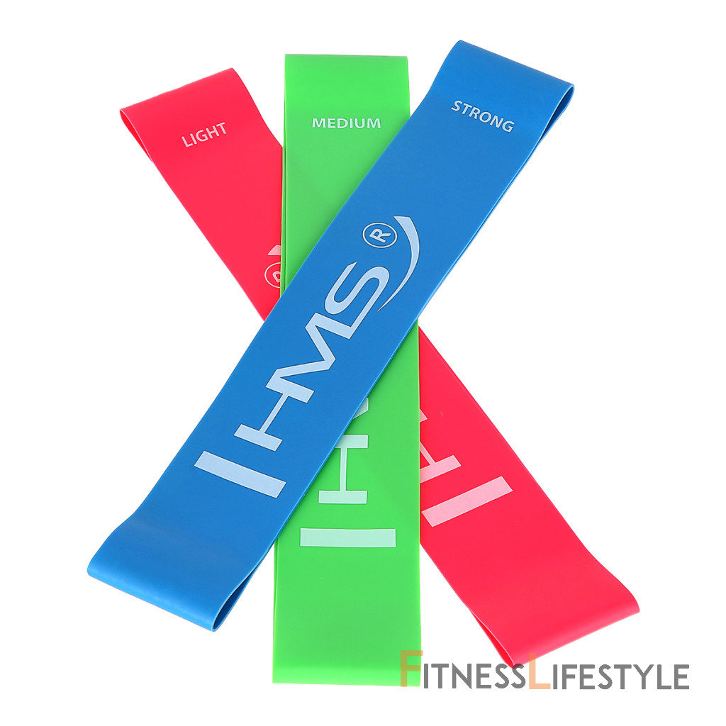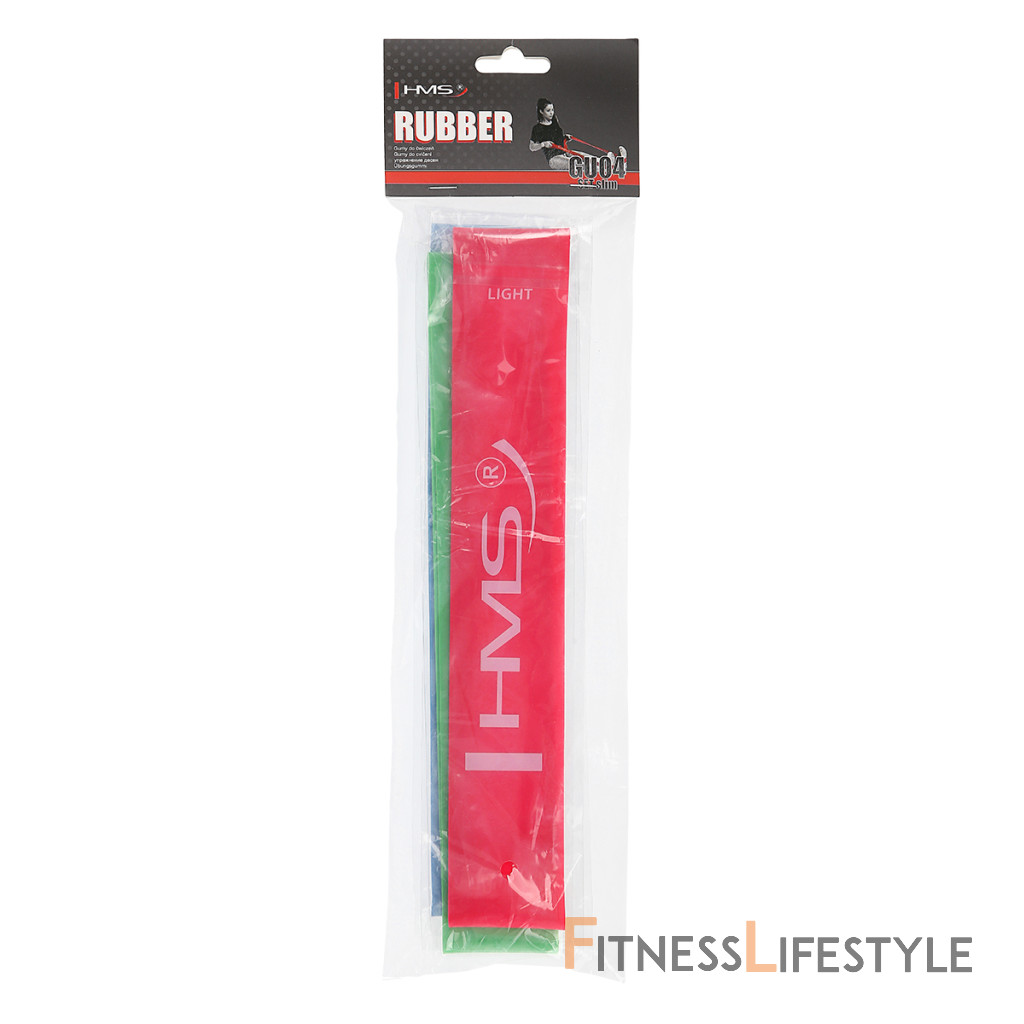 Set 3 krátkych posilňovacích gúm HMS GU04 ktoré sú využívané v silovom tréningu, kondičnom tréningu, ale aj v rehabilitačnom cvičení. V silovom tréningu slúži ako dopomoc alebo ako dynamická záťaž. Pri rehabilitácii sú využité predovšetkým po úrazoch svalov, šliach a kĺbov.