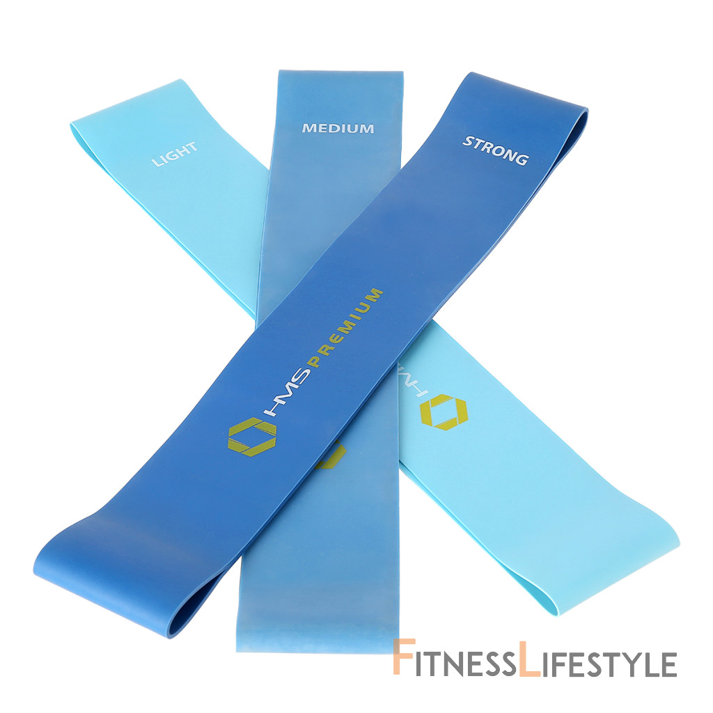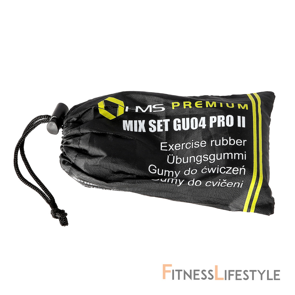 Set 3 krátkych posilňovacích gúm HMS Premium GU04 mix Set PRO II ktoré sú využívané v silovom tréningu, kondičnom tréningu, ale aj v rehabilitačnom cvičení. V silovom tréningu slúži ako dopomoc alebo ako dynamická záťaž. Pri rehabilitácii sú využité pretože nejde o priamu záťaž, ale guma postupným ťahom vytvára odpor a to predovšetkým pri úrazoch svalov, šliach a kĺbov.