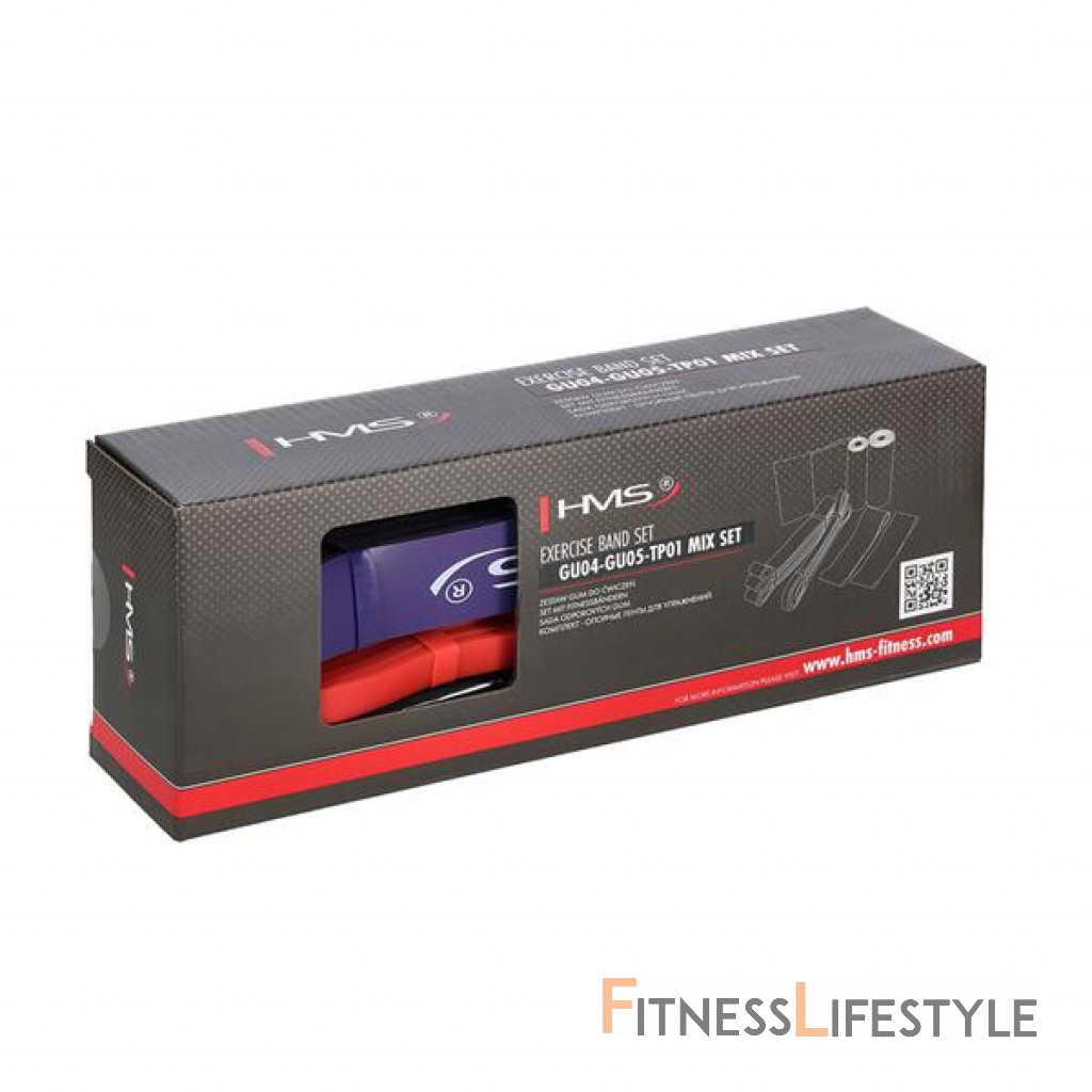 Kombinovaný set 3 typov posilňovacích gúm HMS ktoré sú využívané v silovom tréningu, kondičnom tréningu, ale aj v rehabilitačnom cvičení. V silovom tréningu slúži ako dopomoc alebo ako dynamická záťaž. Pri rehabilitácii sú využité pretože sa nejedná o priamu záťaž, ale guma postupným ťahom vytvára odpor a to predovšetkým pri úrazoch svalov, šliach a kĺbov.