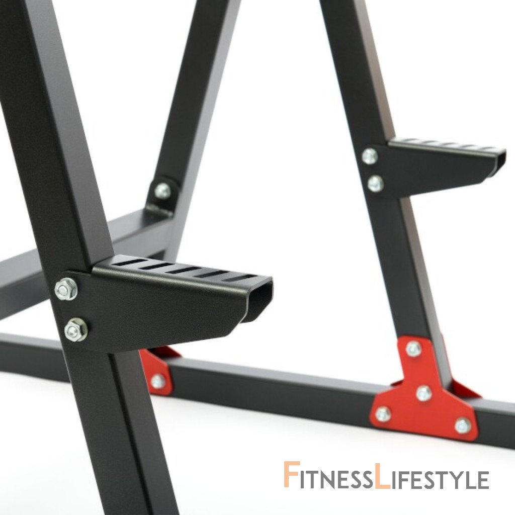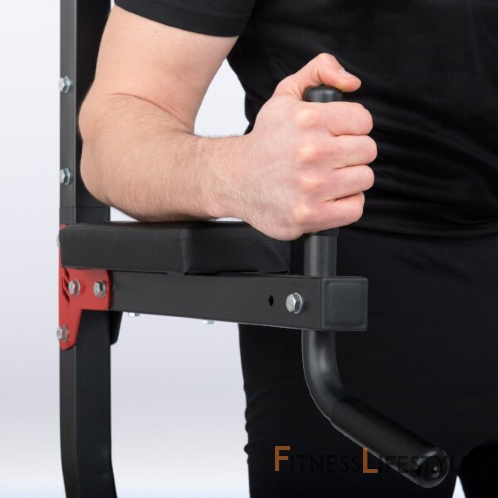 Pohodlné polstrovanie je opatrené sytetickou kožou. Lakťovej opierky sú doplnené madlami, ktorá sa dajú nastaviť do vzdialenosti 38, alebo 42 centimetrov. Bradlá MH-U102 2.0 umožňujú tréning predkopávanie a dipov. Pravidelným cvičením teda posilňujete svaly brucha, ramien a paží. Ak ste menšieho vzrastu, tak iste oceníte oceľové stupačky, ktoré uľahčujú pohodlné dosiahnutie pracovnej pozície. Podpery na kľučky sú vo výške 13,5 centimetrov. Kľučky tak môžete trénovať v celom rozsahu pohybu aj pod úroveň dlaňou. Hrazda so širokým úchopom má madlá vo výške 223 cm a vo vzdialenosti približne 84 centimetrov.
