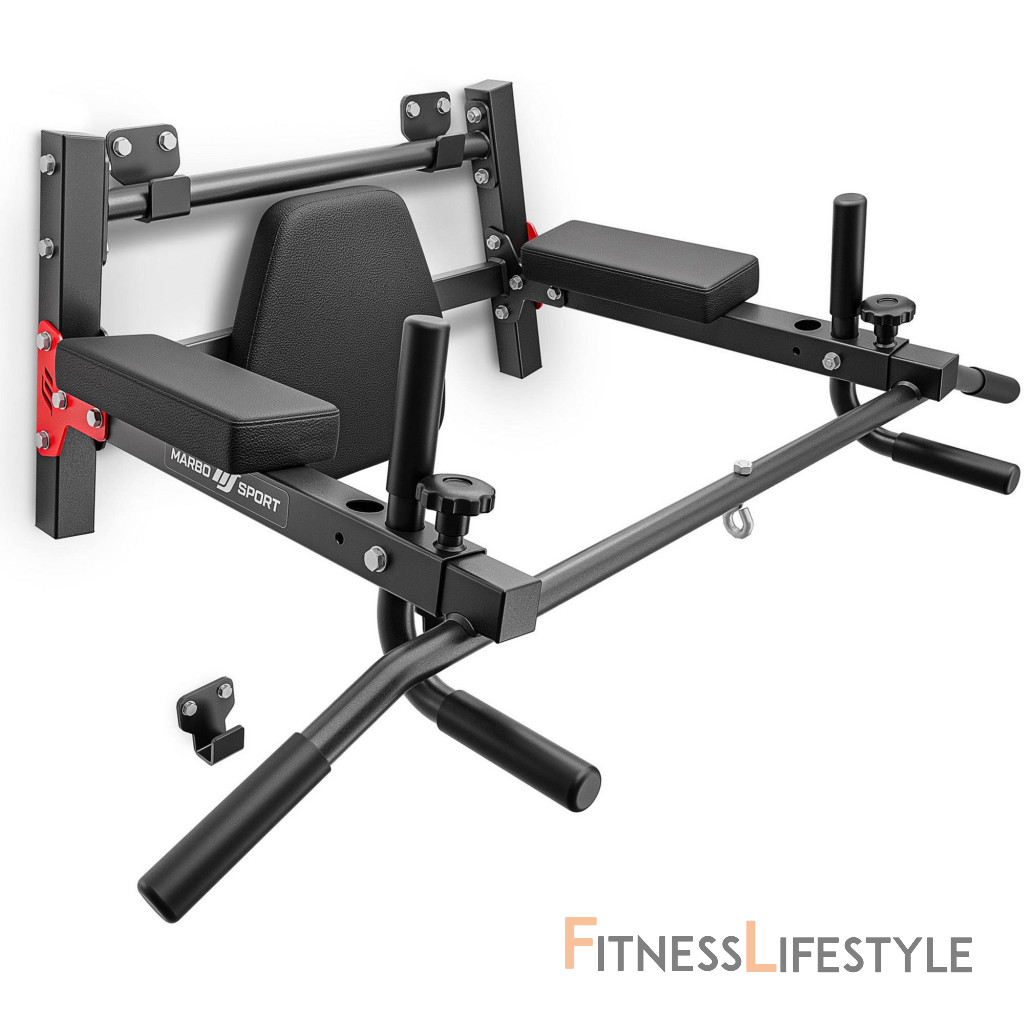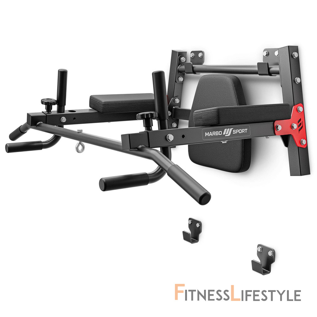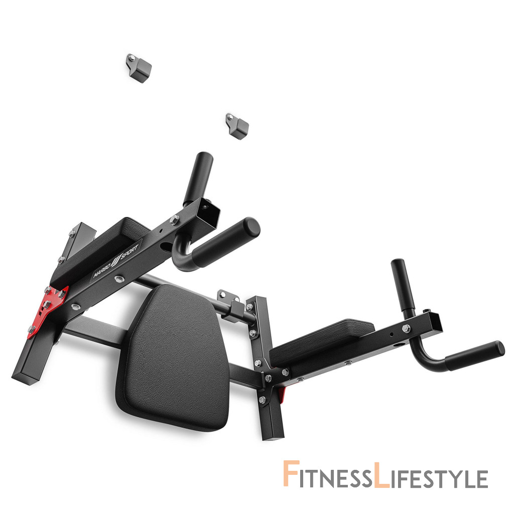 Bradlá s hrazdou MARBO Sport MH-U205 sú určené pre zavesenie na stenu, alebo na rebriny. Variabilita MH-U205 je postavená na 3 pároch hákov, ktoré nájdete v balení. Prvé 2 páry sú určené pre montáž na stenu: 1. pár sa použije pre montáž do ideálnej výšky pre hrazdu a 2. pár sa upevní do výšky pre použitie bradiel. Pre bezpečné použitie je Nunta zvoliť správne kotvenie podľa materiálu steny. 3. pár sa použije v prípade zavesenia na rebriny a pripevňuje sa na konštrukciu MH-U205.