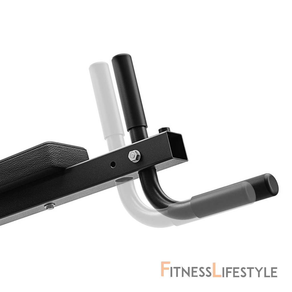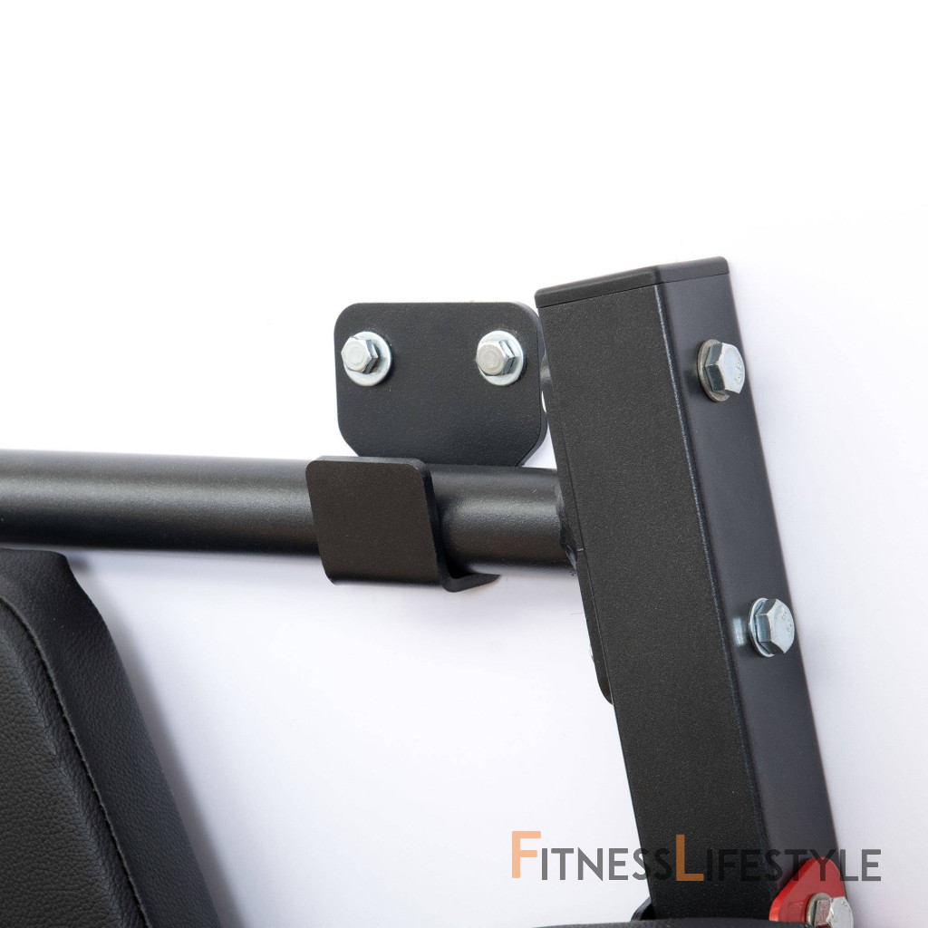 Hrazda sa vkladá do profilov, ku ktorým sú pripevnené lakťovej opierky, a zabezpečuje sa skrutky s ergonomickým úchopom pre dotiahnutie bez použitia náradia. Šírka hrazdy je 107 cm a uprostred nájdeme oko pre zavesenie boxovacieho vreca.
