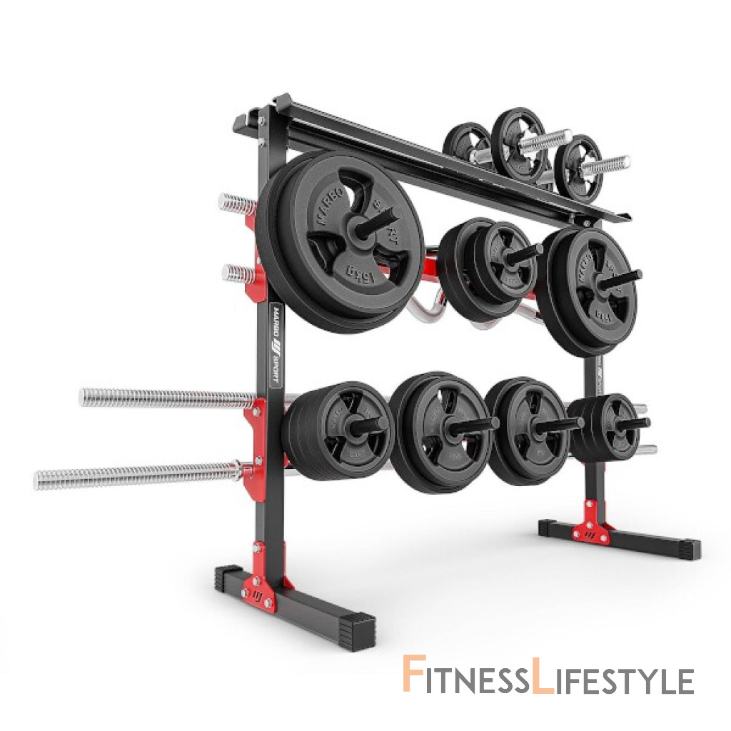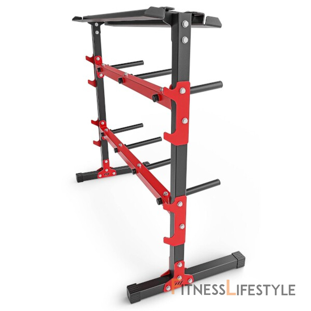 Stojan na osi a závažia Marbo Sport MH-S209 je funkčné a bezpečné riešenie pre odkladanie kotúčov, činiek a vzpieračských osí o celkovej hmotnosti až 300 kilogramov.