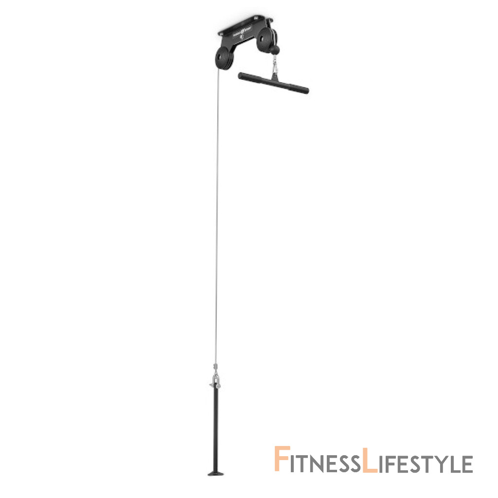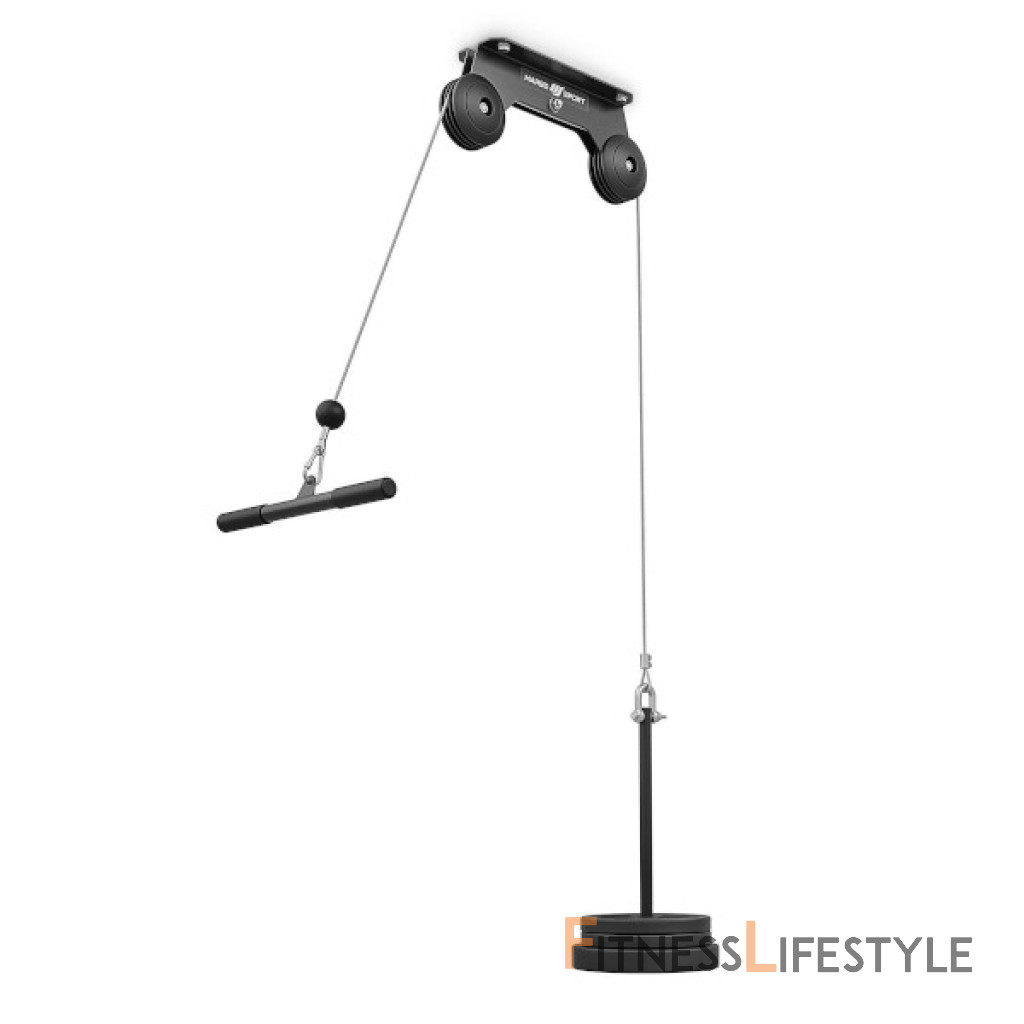 Samotné kladky sú osadené ložiskami pre plynulý chod lanka. Špeciálne tvarovaná štrbina zamedzuje vyskakovanie lanka z kladky. Oceľový plech, použitý na konštrukciu, umožňuje zaťaženie kladky až 120-tich kilogramy. Priemer nakladacieho tŕňa je 20 milimetrov a je teda kompatibilný ako s obyčajnými, liatinovými kotúčmi, tak olympijskými kotúčmi. Výška tŕňa je 45 centimetrov. Koniec oceľového lanka je prevlečený gumovým dorazom, ktorý chráni konštrukciu kladky pred poškodením pri náhlom pustenia, alebo vykĺznutiu madlá z dlane. Súčasťou sady MH-W105 2.0 je tricepsový adaptér MH-C002 ..