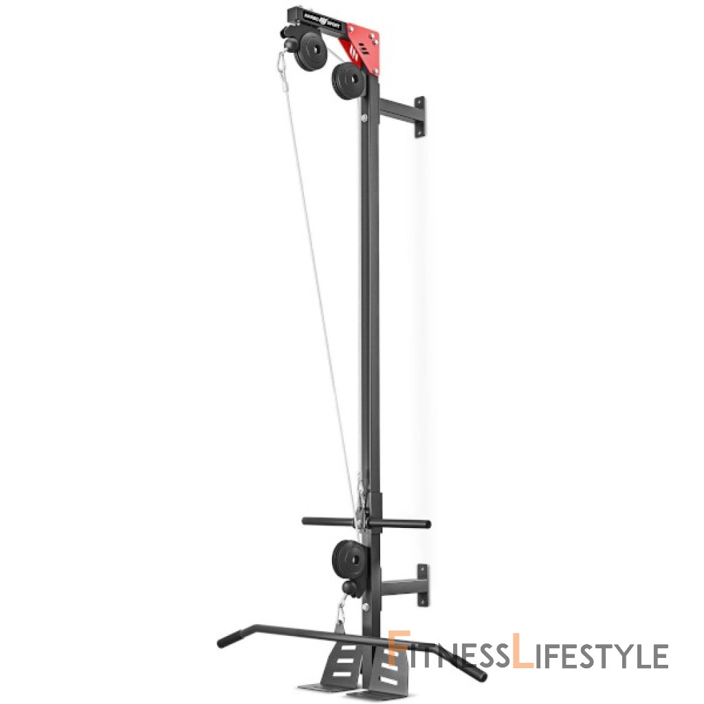 Vrchná a spodná kladka MARBO Sport MH-W101 2.0 určená pre montáž do steny a slúži na precvičovanie svalov paží, ramien a chrbta.