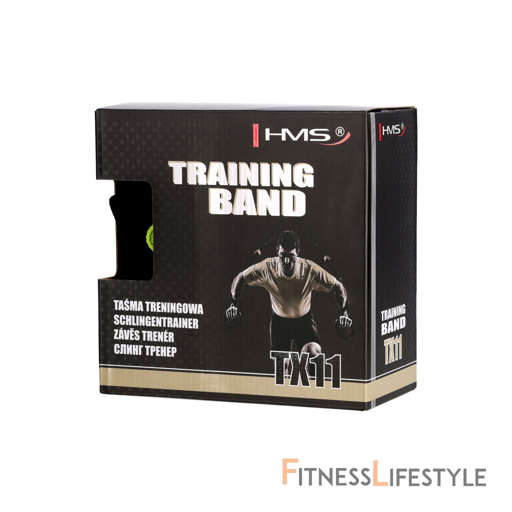 Závesný posilňovací systém HMS TX11 je viacúčelová sada popruhov fungujúci na princípe posilňovanie s vlastnou hmotnosťou, systém možno ľahko uchytiť ako do dverí, tak vďaka karabíne do akéhokoľvek priestoru. Konce týchto popruhov sú opatrené mäkkými úchopy pre ruky a nohy. Jednoduchý, ale veľmi efektívny systém posilňovanie proti vlastnej hmotnosti sa stal rýchlo veľmi obľúbeným u všetkých typov používateľov. Toto ražízení si zapáčili aj profesionálni športovci, ktorí sa závesným zariadením naberajú kondíciu na sezónu. Hlavnými prednosťami posilňovača súpravy TX11 sú nízke obstarávacie náklady, vysoká účinnosť a nenáročnosť na skladovanie.