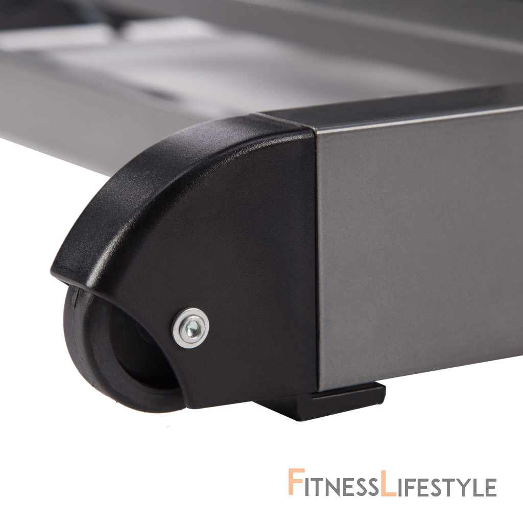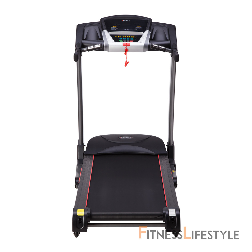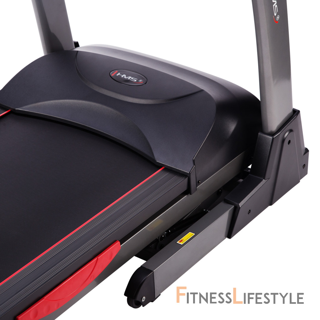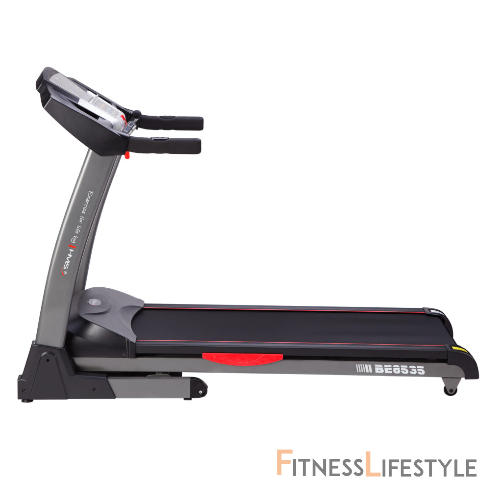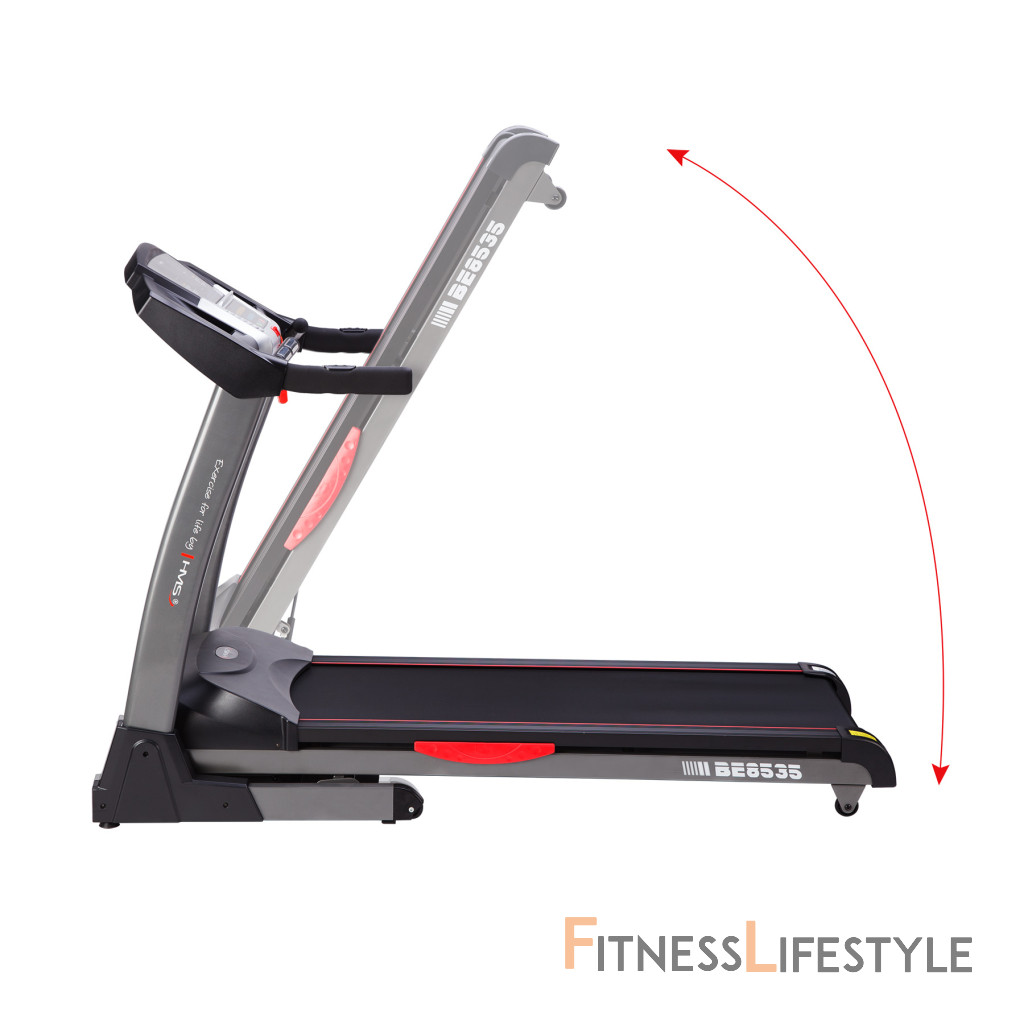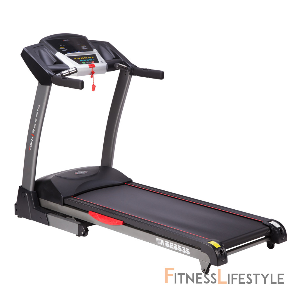 Bežecký pás BE8535 HMS je moderný, robustný bežecký trenažér s možnosťou ľahkého zloženia a snímačmi tepovej frekvencie v rukovätiach. Tichý motor s výkonom 3,5 HP zaručí maximálnu rýchlosť 22 km/h. Odpružená bežecká plocha s možnosťou elektronického zdvihu pásu, ponúka dostatok komfortu pre každodenný tréning. Všetky potrebné informácie vám prehľadne zobrazí podsvietený LED displej, pod ktorý si vďaka praktickej opierke môžete umiestniť napríklad tablet. Výhodou sú zabudované kolieska pre ľahký presun pásu na požadované miesto. Vďaka týmto vlastnostiam je bežecký pás BE8535 HMS vhodným doplnením každej domácej posilňovne.