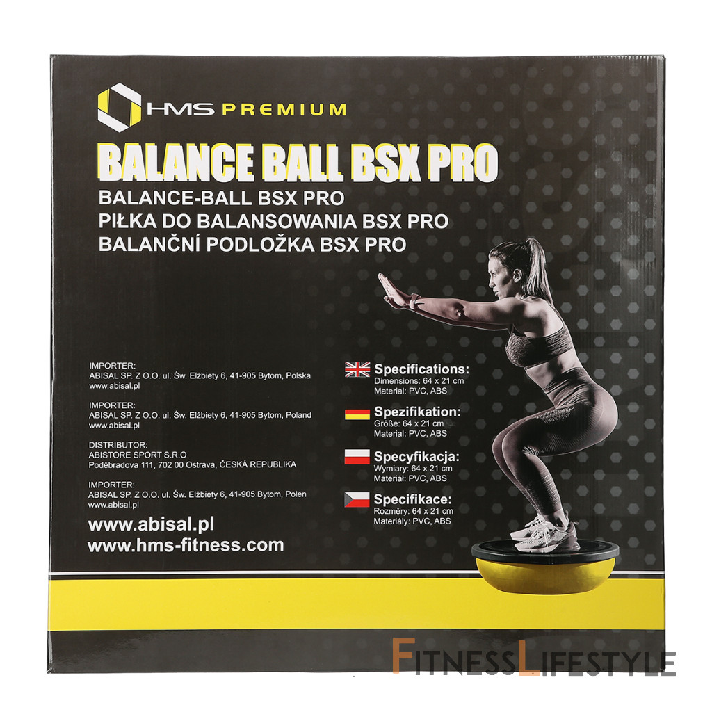Profesionálne balančné podložka HMS Premium BSX Pre vyzerá trošku ako rozpolený loptu. Používa sa dvoma rôznymi spôsobmi a to buď plochou stranou nahor alebo touto stranou nadol. BOSU lopta je hojne využívaný najmä pri balančných cvičeniach. Najprv sa podložka používala hlavne pri rehabilitáciách v nemocniciach, ale dnes už s ňou cvičia celá široká verejnosť. Cvičenie je vhodné ako pre ženy, tak pre mužov. BSX Pro je dobrý v tom, že sa zapojí aj hlboký stabilizačný systém. Pomáha tiež v prevencii proti bolesti chrbta.