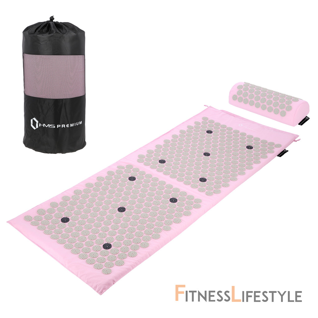 Akupresúrne sada HMS Premium AKM04 obsahuje masážne podložku, vankúšik a vak pre ľahké uskladnenie.