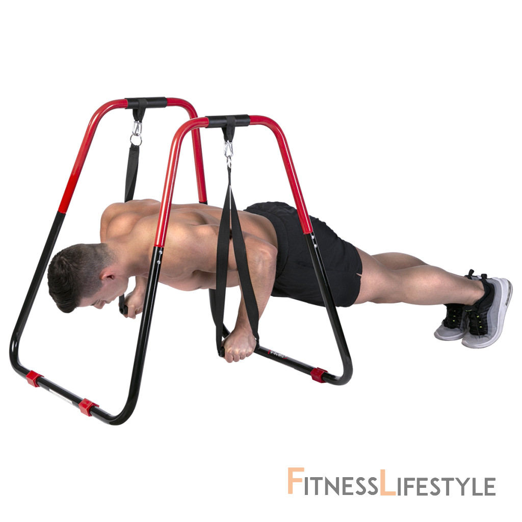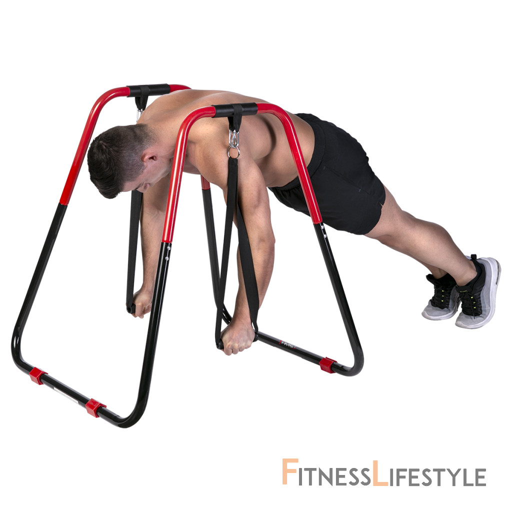 Konštrukcia HMS PW22 kombinuje podpery ku klikům s bralami. Samotná oceľová konštrukcia je pevní a stabilný. Vďaka penovým madlám budete mať istotu u úchopu pri tréningu dipov, stojok a pod .. Po montážou dodávaných popruhov môžete plynulo prejsť k tréningu klikov.