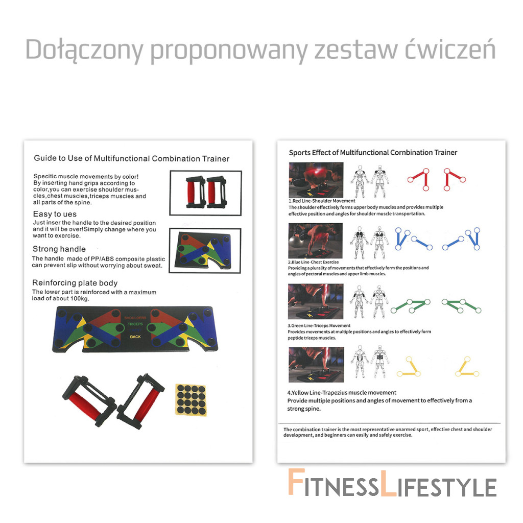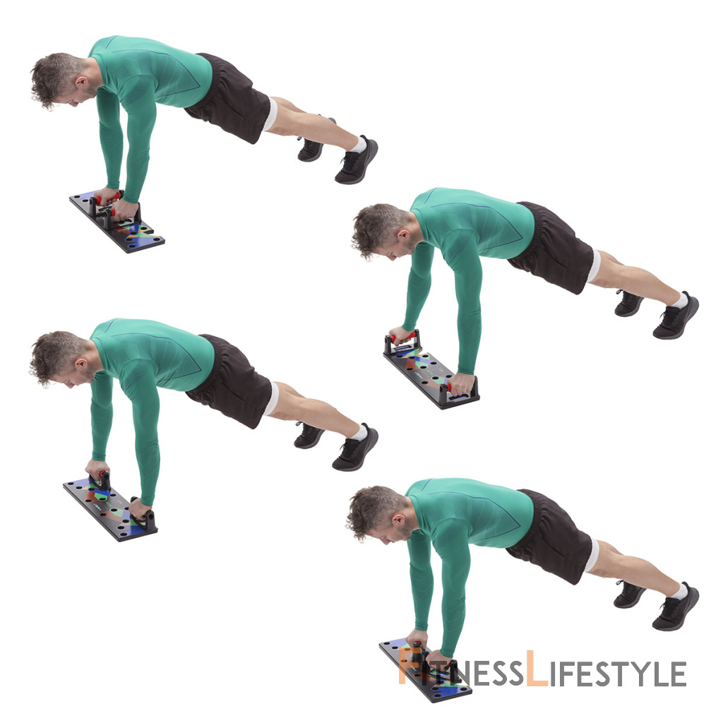 - pri umiestnení podpier do odtieňov modrých otvorov budete počas klikování precvičovať prsné svaly