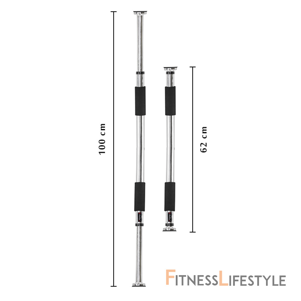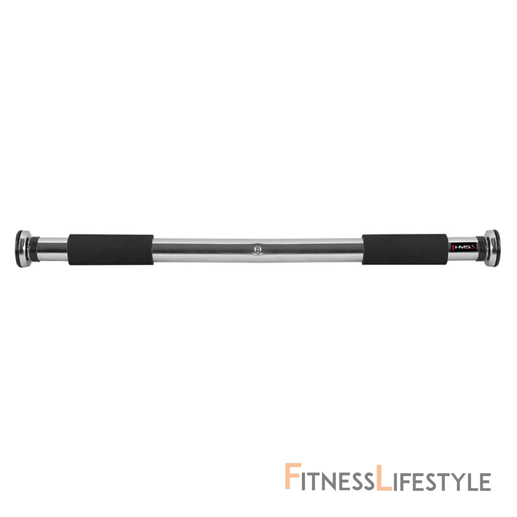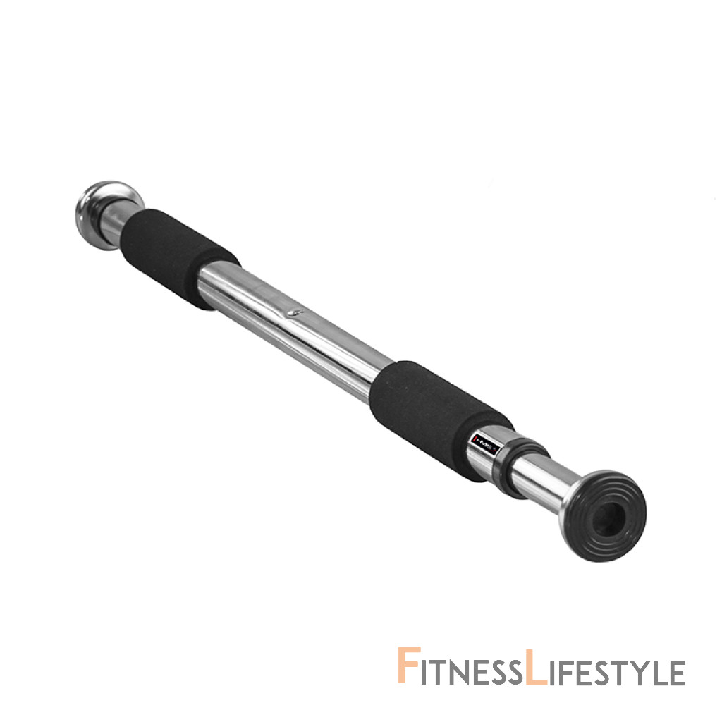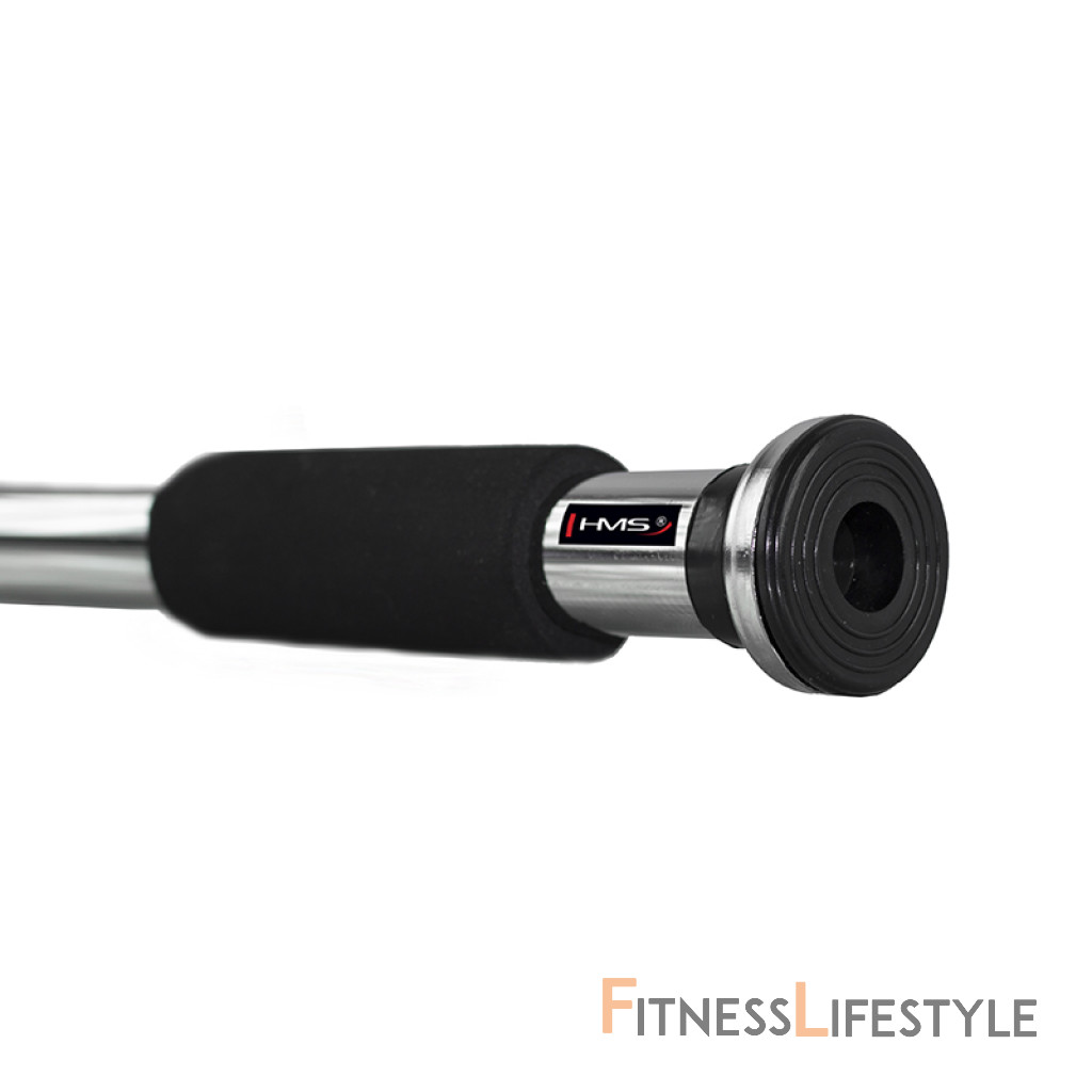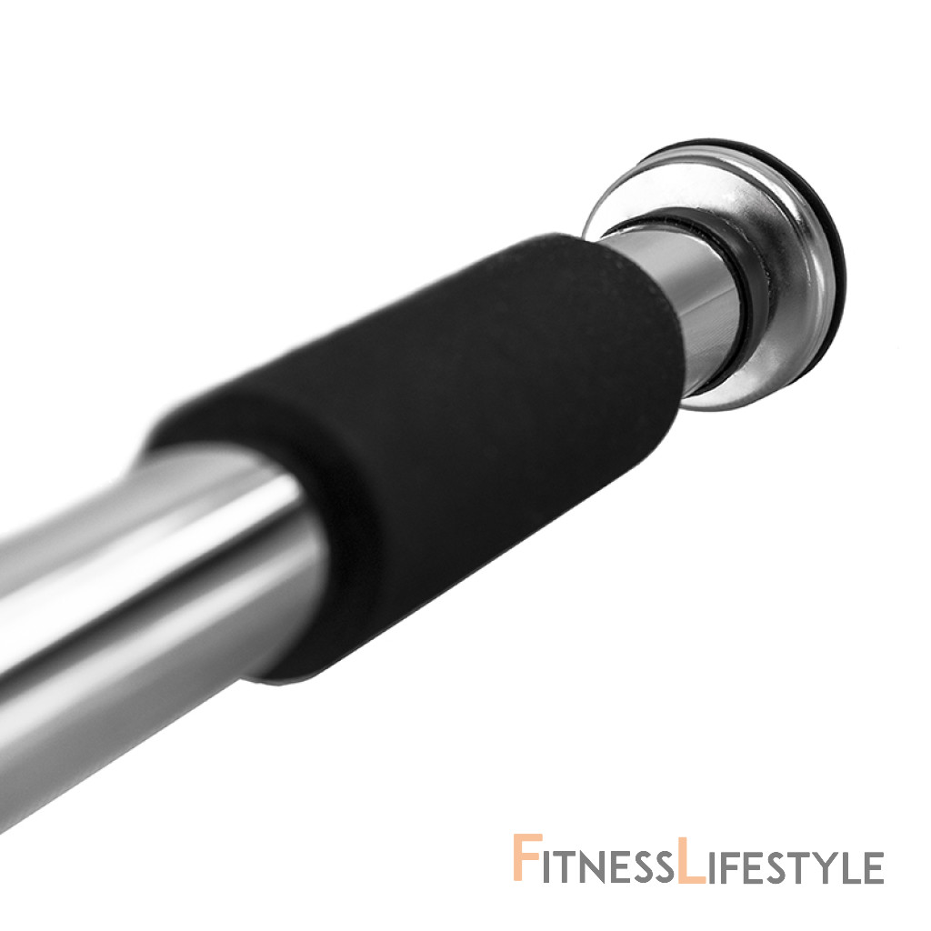 Hrazda do dverí vyrobená z ocele s lesklým chrómovým povrchom. Jednoduchá montáž a vďaka robustným držiakov so závitom aj veľmi bezpečná. Rukoväte sú vyrobené z mäkkej peny. Sada obsahuje ďalšie dve podložky a dve skrutky. Veľký rozsah hrazdy dopomáha tomu, že je vhodná do akéhokoľvek typu dverí.