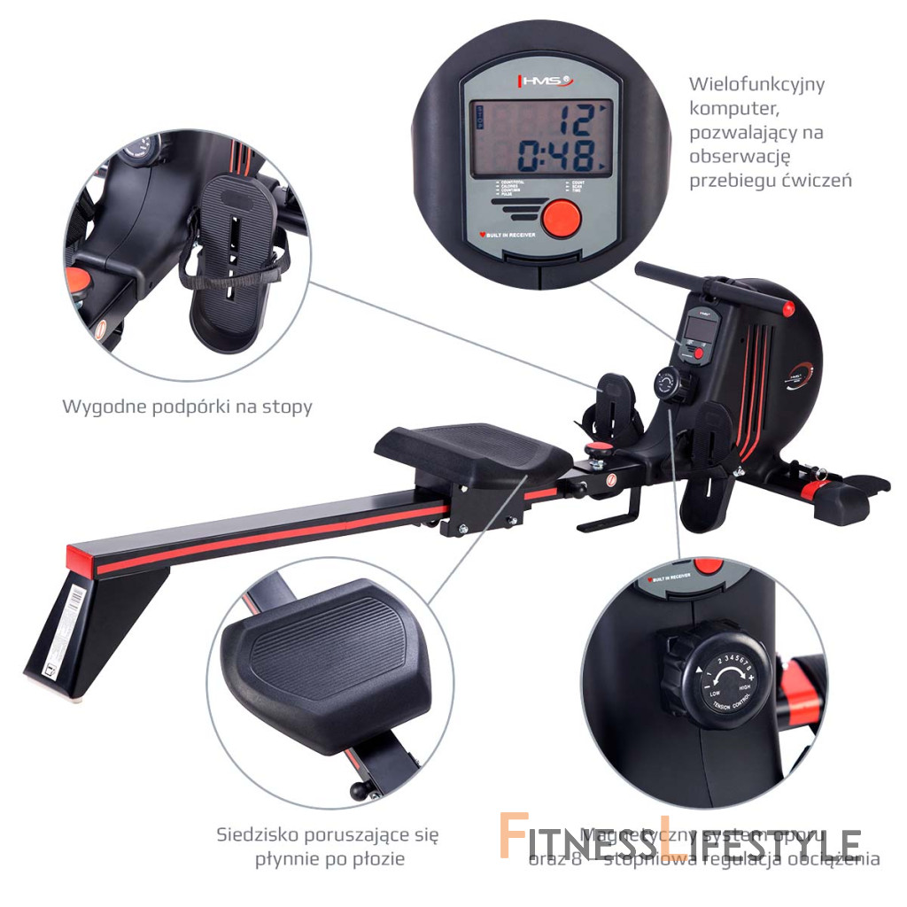 Veslári HMS 1502 je všestranný nástroj, ktorý okrem štandardného veslovanie umožňuje precvičovať horné a dolné svalové skupiny.