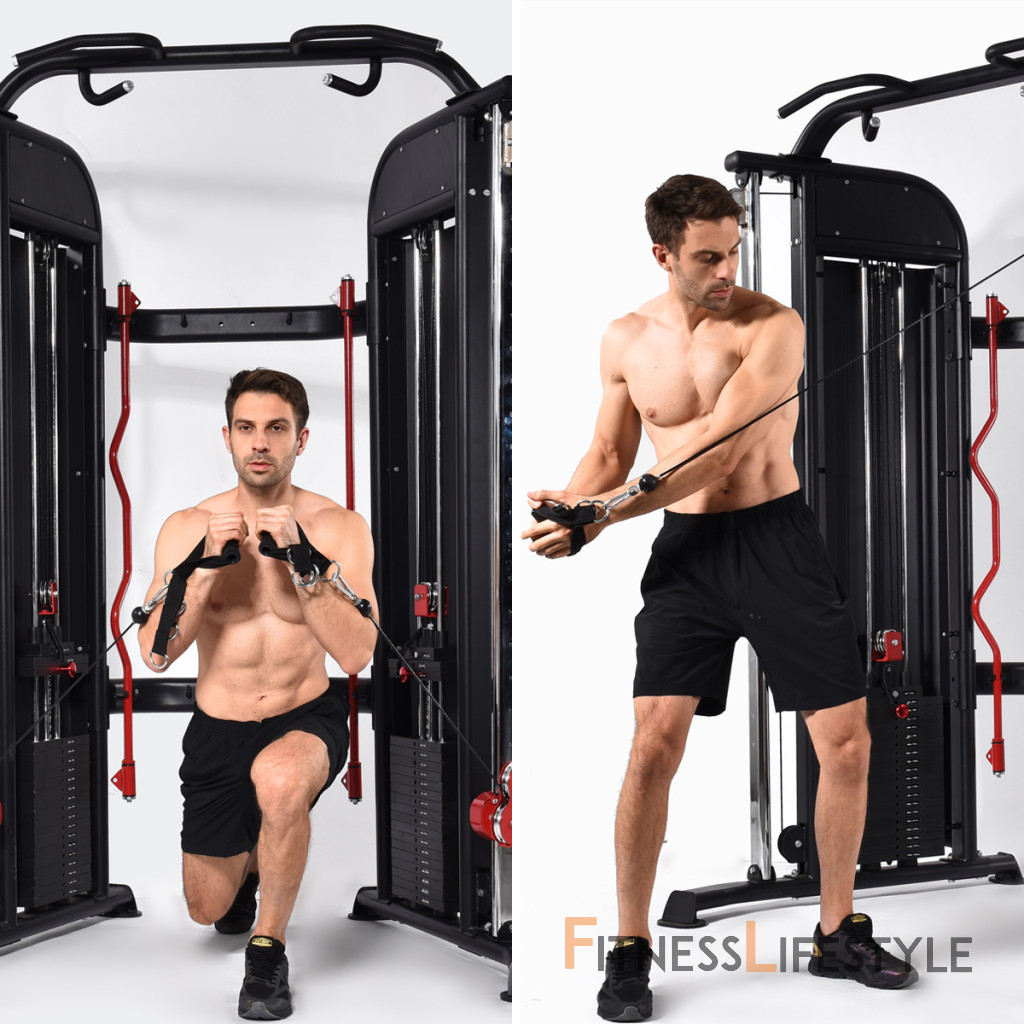 Dve posuvné kladky HMS ARES 1 MAITING STROJE vám dávajú príležitosť vykonať neobmedzený počet cvičení pre všetky svalové časti. Jeho ergonomický tvar ponúka dostatok priestoru na cvičenie, či už používate jednu kladku alebo naraz. Dvaja ľudia ho môžu ľahko použiť súčasne.