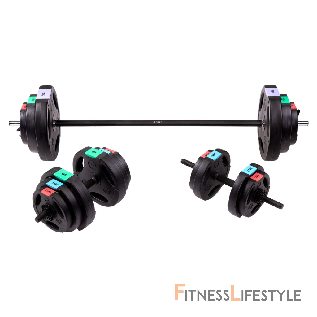Kompletná nakladacia sada dvoch jednoručných a jednej obojručné činky o celkovej hmotnosti 62 kilogramov, to je HMS SGSP60. Nakladacie činky patrí ku klasickému vybaveniu každej domácej posilňovne.