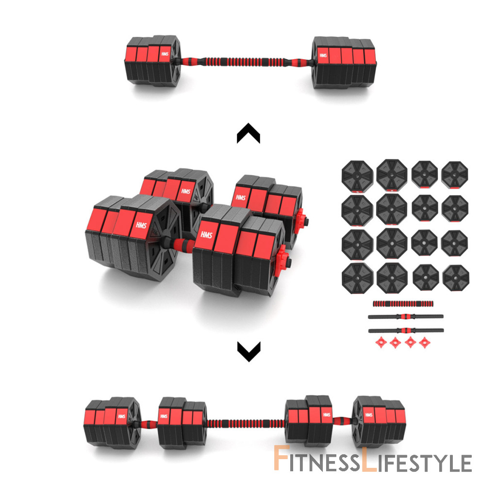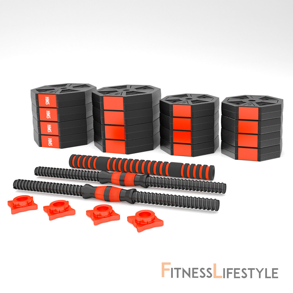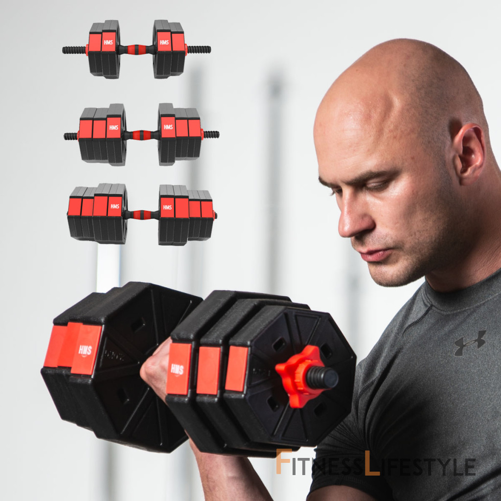 Kompletná nakladacia sada dvoch jednoručných a jednej obojručné činky o celkovej hmotnosti 40 kilogramov, to je HMS SGC40. Nakladacie činky patrí ku klasickému vybaveniu každej domácej posilňovne.