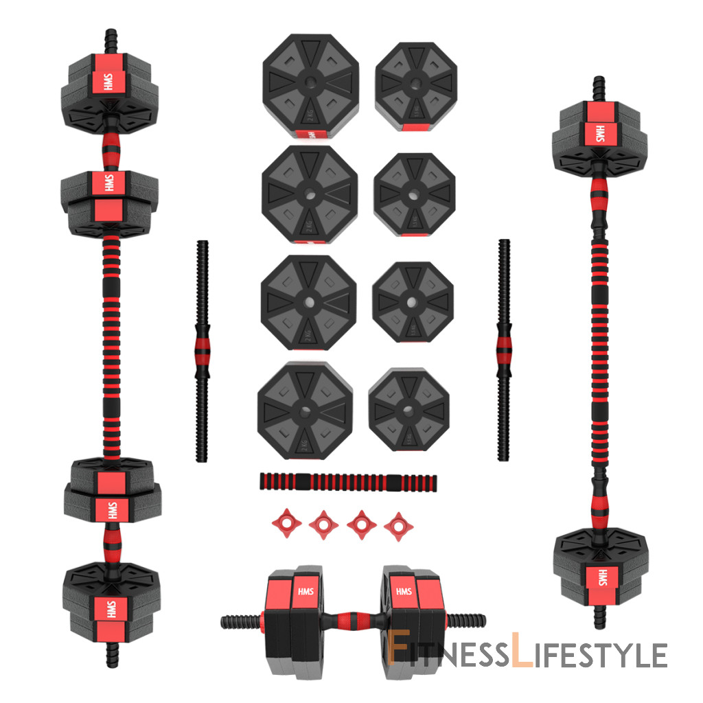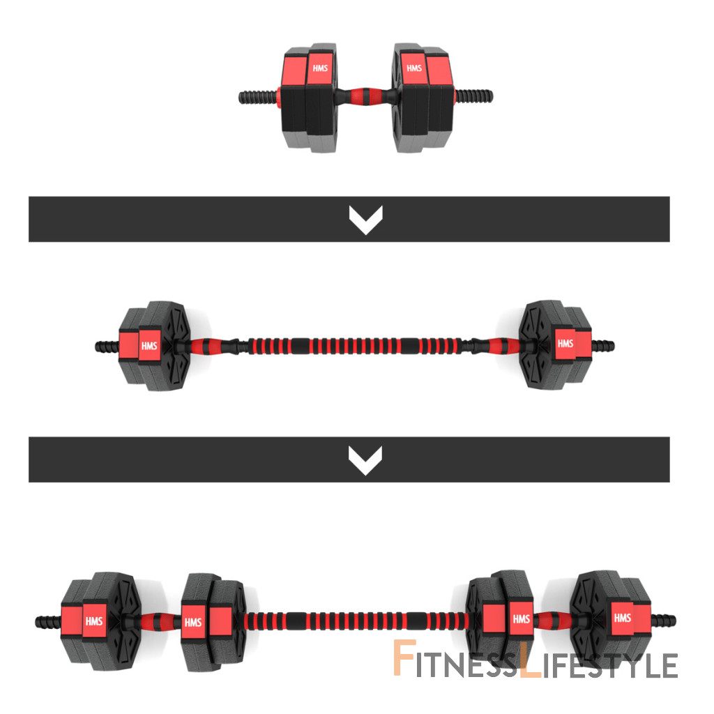 Kompletná nakladacia sada dvoch jednoručných a jednej obojručné činky o celkovej hmotnosti 15 kilogramov, to je HMS SGC15. Nakladacie činky patrí ku klasickému vybaveniu každej domácej posilňovne.