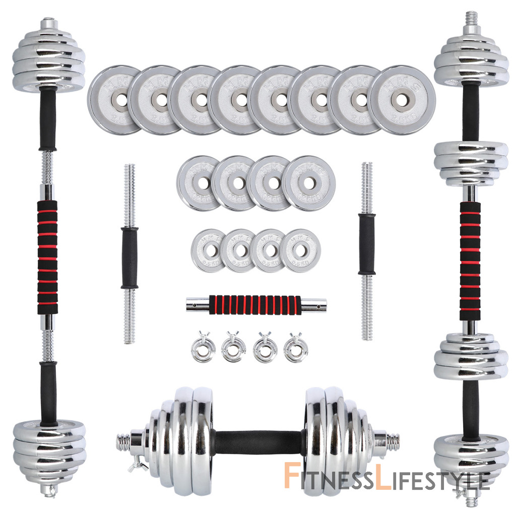 Špeciálny spojovací diel je po stranách opatrený závitmi, do ktorých sa jednoducho vskrutkujú obe činky. Súprava HMS STC30 je prvým modelom z našej ponuky, ktorý umožňuje toto riešenie, ktoré šetrí náklady a miesto vo Vašej domácej posilňovni. Sada obsahuje 2 krátke, nakladacie osi opatrené ergonomickým úchopom, spojovací diel, 4 zámky a 16 kotúčov.