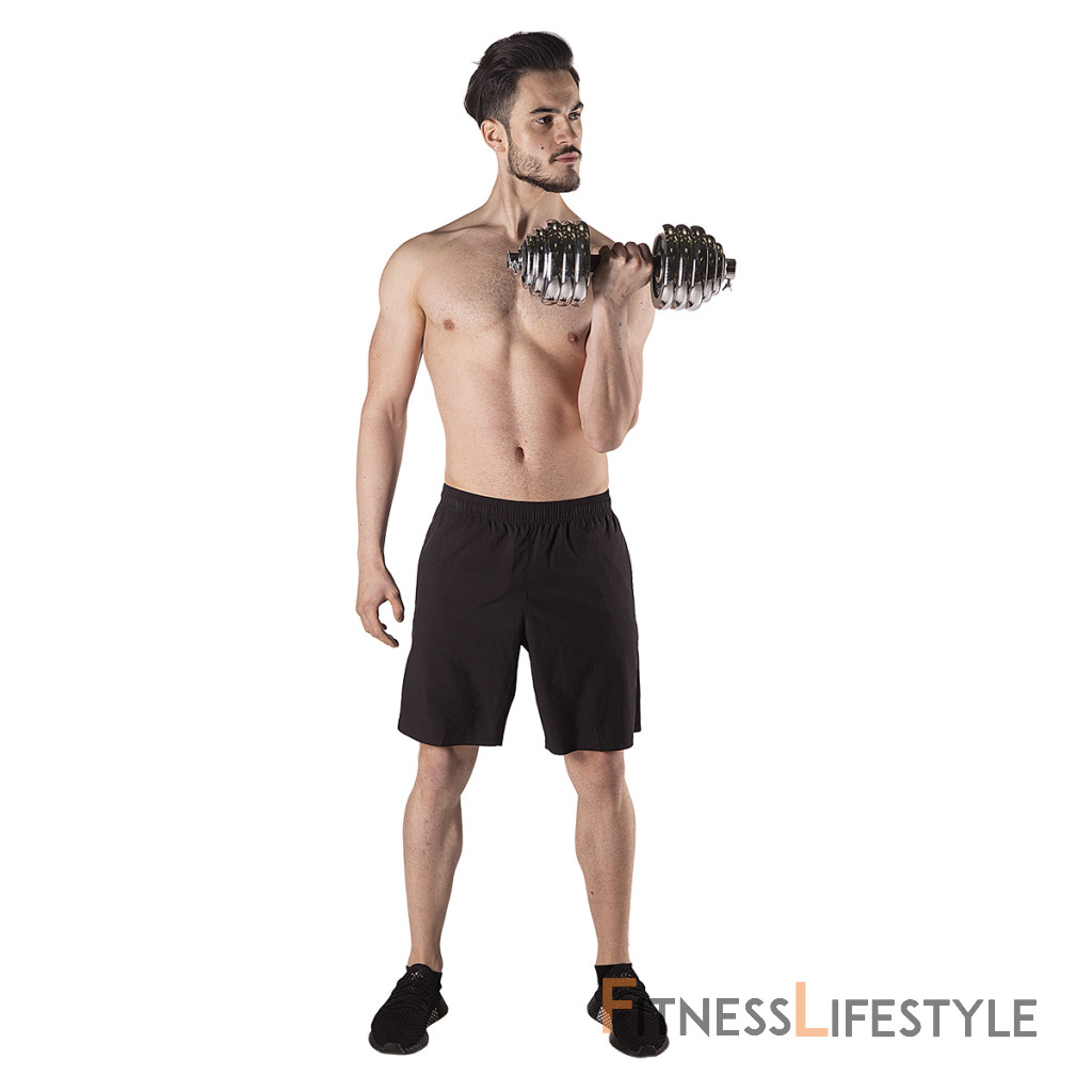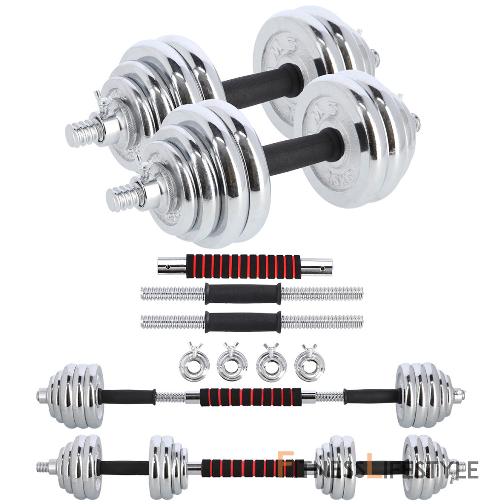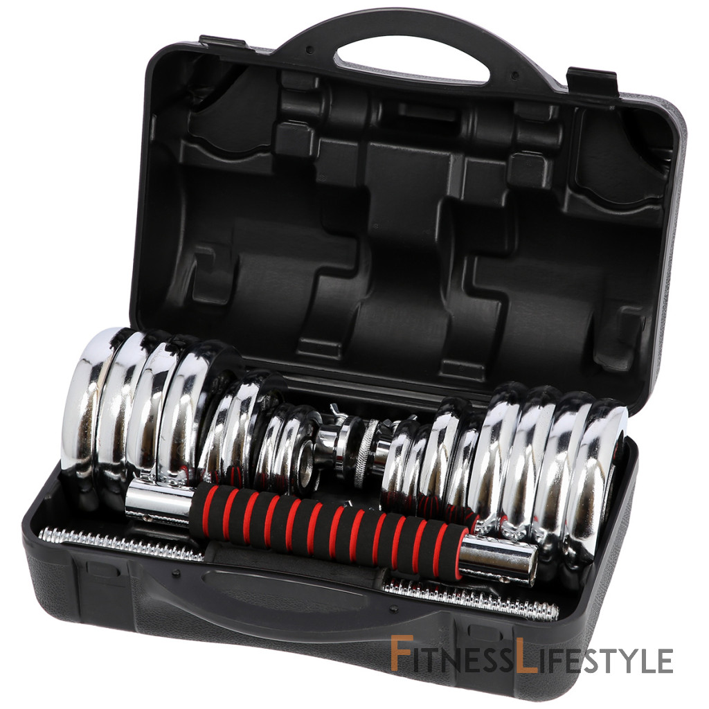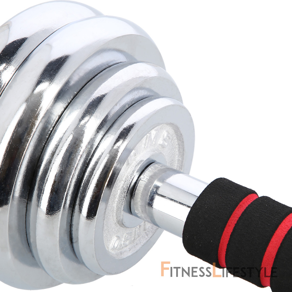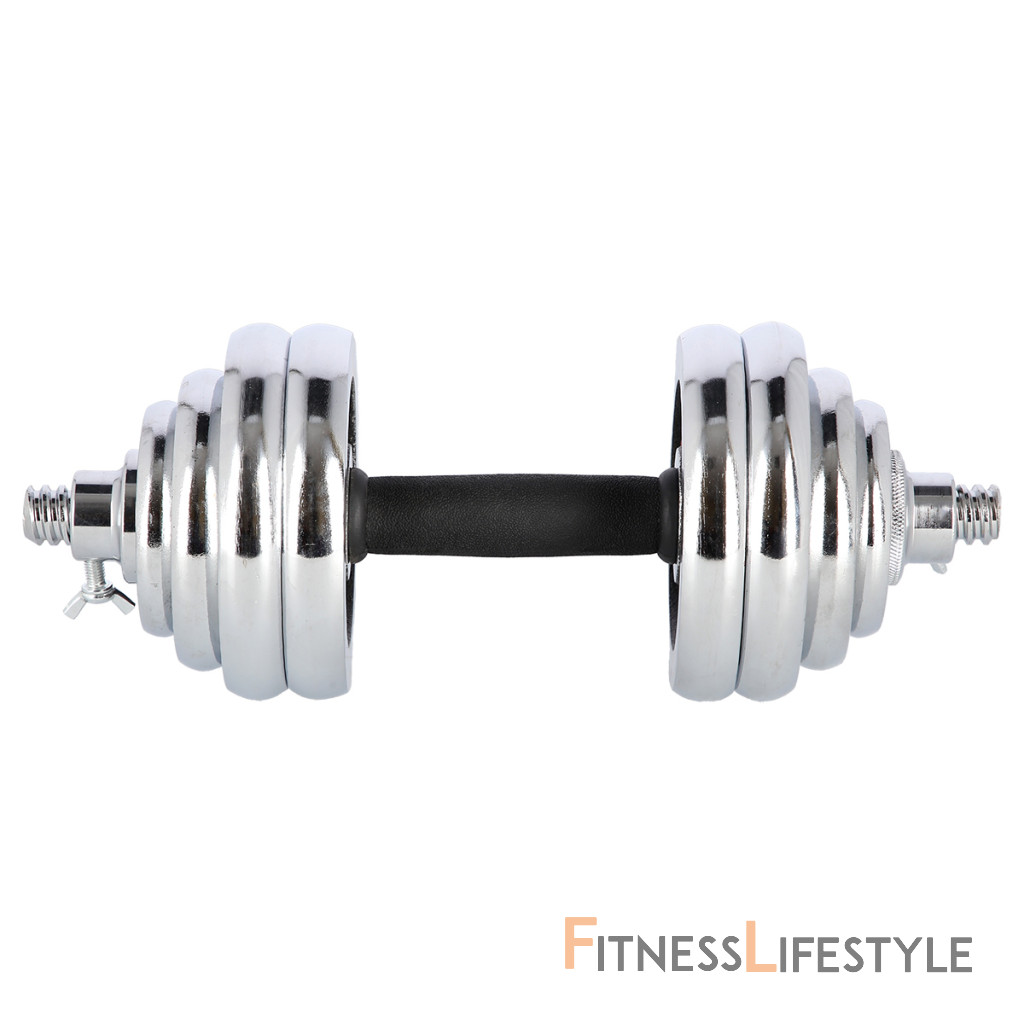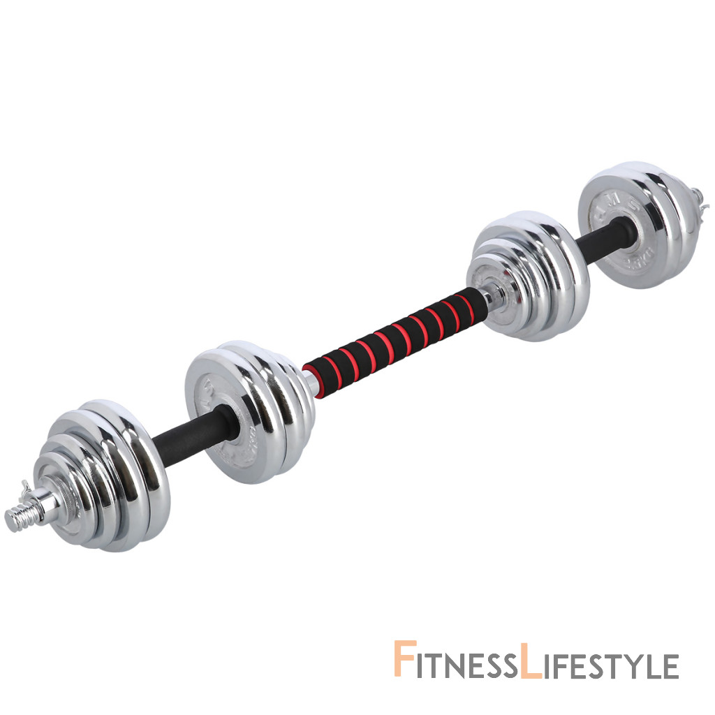 Činky sú vyrobené z vysoko kvalitnej, chrómovanej ocele, ktorá je zárukou dlhej životnosti. Kotúče sa proti posunutiu zaisťujú skrutkovacími zámkami, ktoré sú dodatočne istené skrutkou s krídlovou matkou.