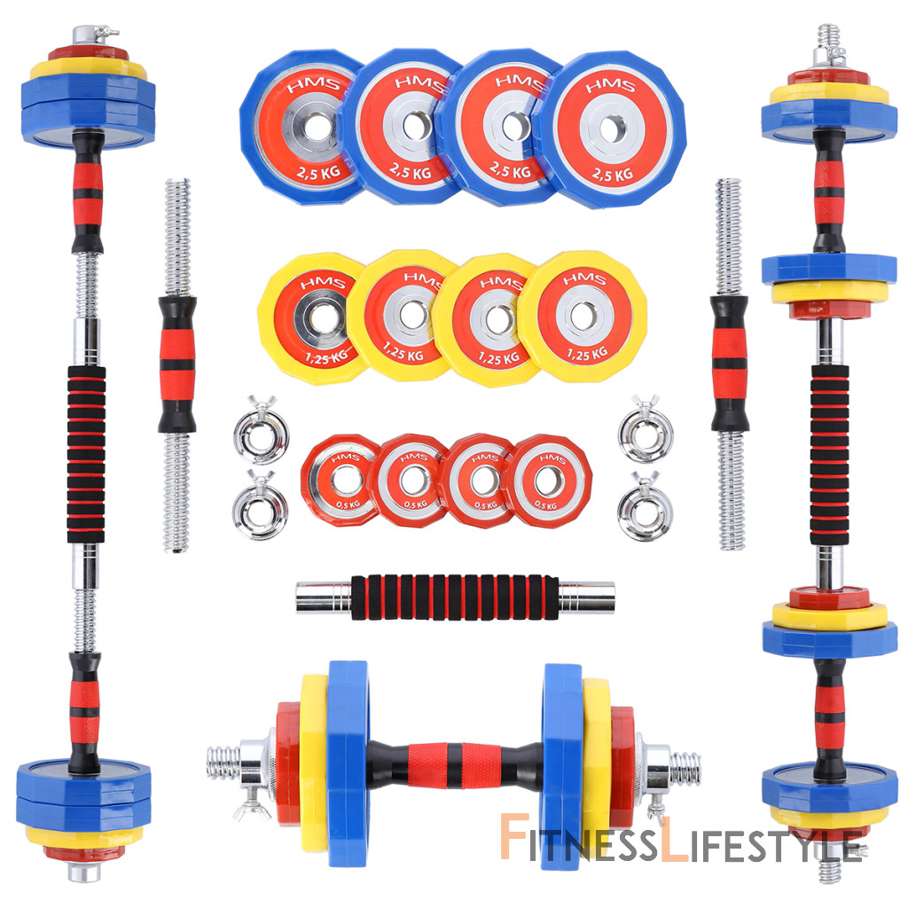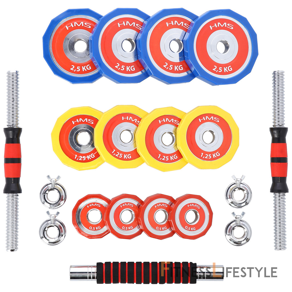 Špeciálny spojovací diel je po stranách opatrený závity, do ktorých sa jednoducho všroubují obe činky. Sada HMS SKC20 je prvým modelom z našej ponuky, ktorý umožňuje toto riešenie, ktoré šetria náklady a miesto vo Vašej domácej posilňovni. Sada obsahuje 2 krátke, nakladacie osi opatrené ergonomickým úchopom, spojovací diel, 4 zámky a 12 kotúčov.