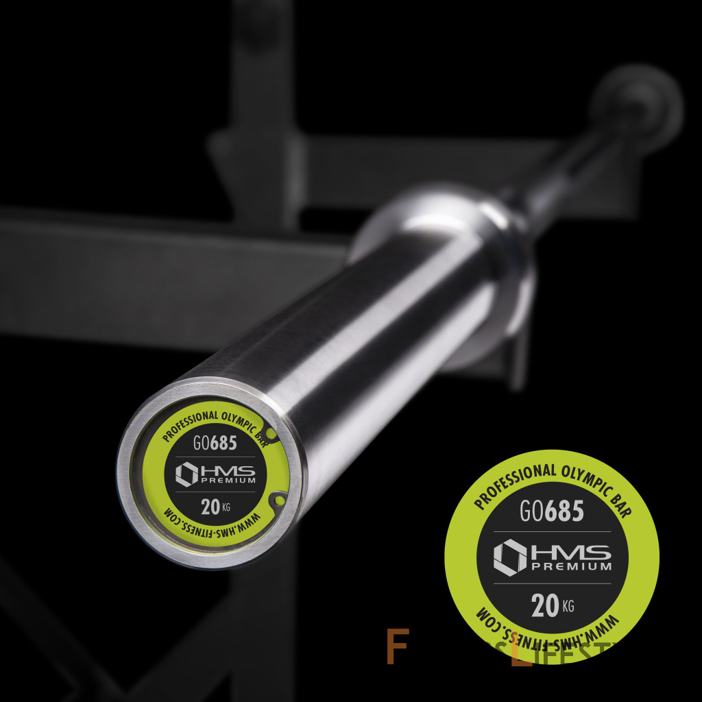 Olympijský hriadeľ HMS Premium GO685 je vyrobený zo špeciálnej chrómovanej ocele, ktorá prešla procesom kalenia. Os GO685 sa vyznačuje pevnosťou v kombinácii s dokonalou pružnosťou. Súčasťou súpravy sú dva plastové uzávery ZG1000. Pevné a pohodlné uchopenie hriadeľa je zaistené vrúbkovaním na povrchu. Maximálne zaťaženie je 680 kg.