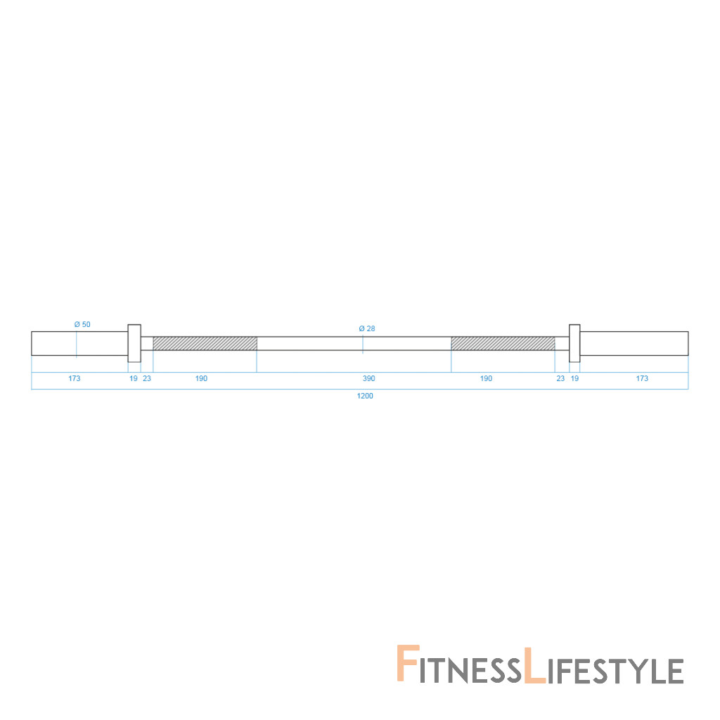Priemer rukoväte je 28 mm a počas tréningu zaisťuje vysokú odolnosť a pohodlie. Použitý proces chrómovania hriadeľa je zárukou udržiavania jeho vzhľadu na dlhú dobu a je tiež najlepšou ochranou korózie.
