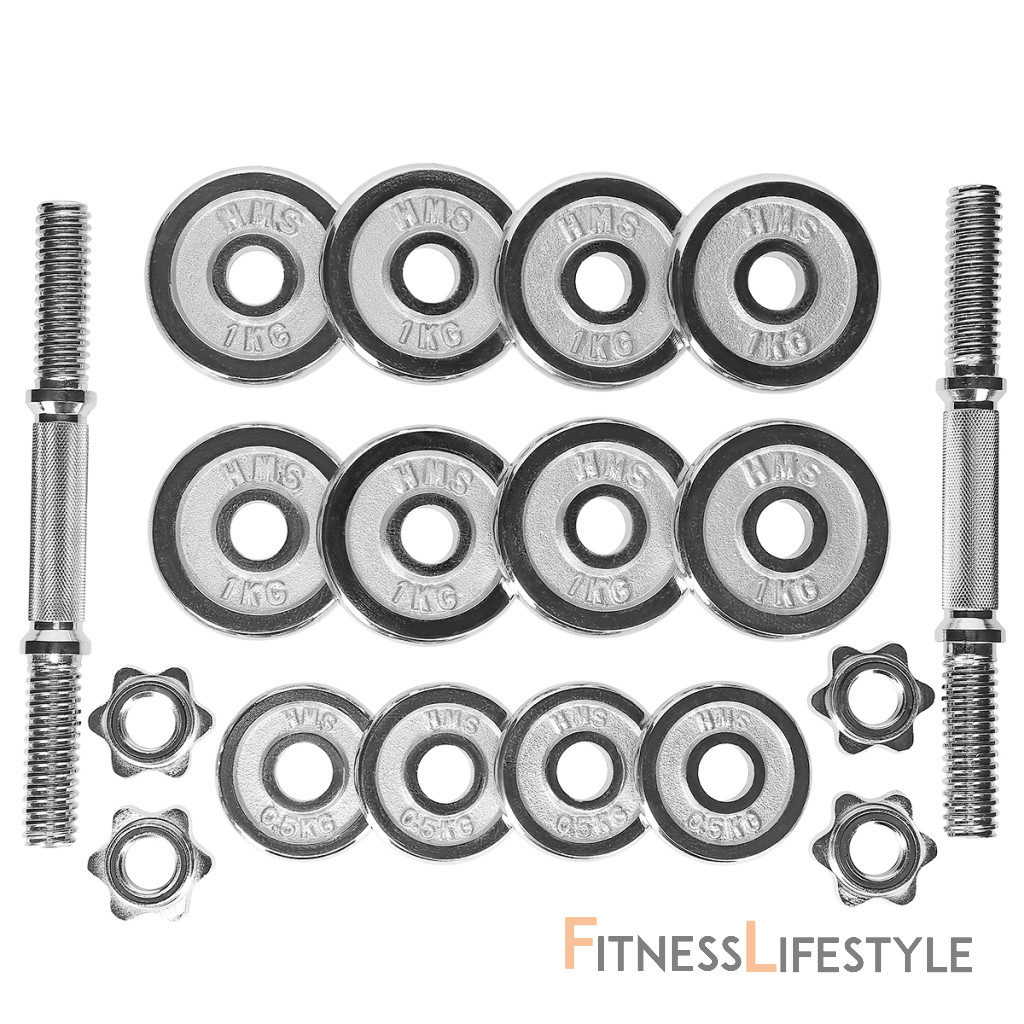 Sada jednoručných činiek v kufríku. Kufrík obsahuje 2 jednoručné hriadele, sadu chrómovaných kotúčov. 4 kusy matiek. Vďaka balenie v plastovom uzatvárateľnom kufríku, možno činky jednoducho prenášať a skladovať.