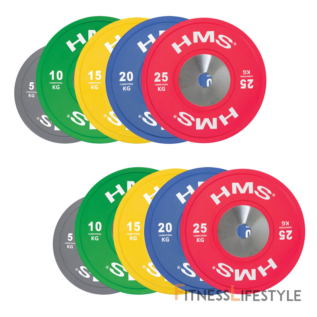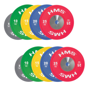 Set oympíjskych kotúčov HMS vhodný pre závody vo vzpieračstve a pri funkčnom tréningu. Tento set je sfarbený presne podľa závodných noriem. Jeho hlavným parametrom je odolnosť, kedy aj po odhode z veľkej výšky, zostane kotúč aj podložie bez známky poškodenia. Kotúč je určený pre olympijské osi s priemerom tŕňov 50 mm.