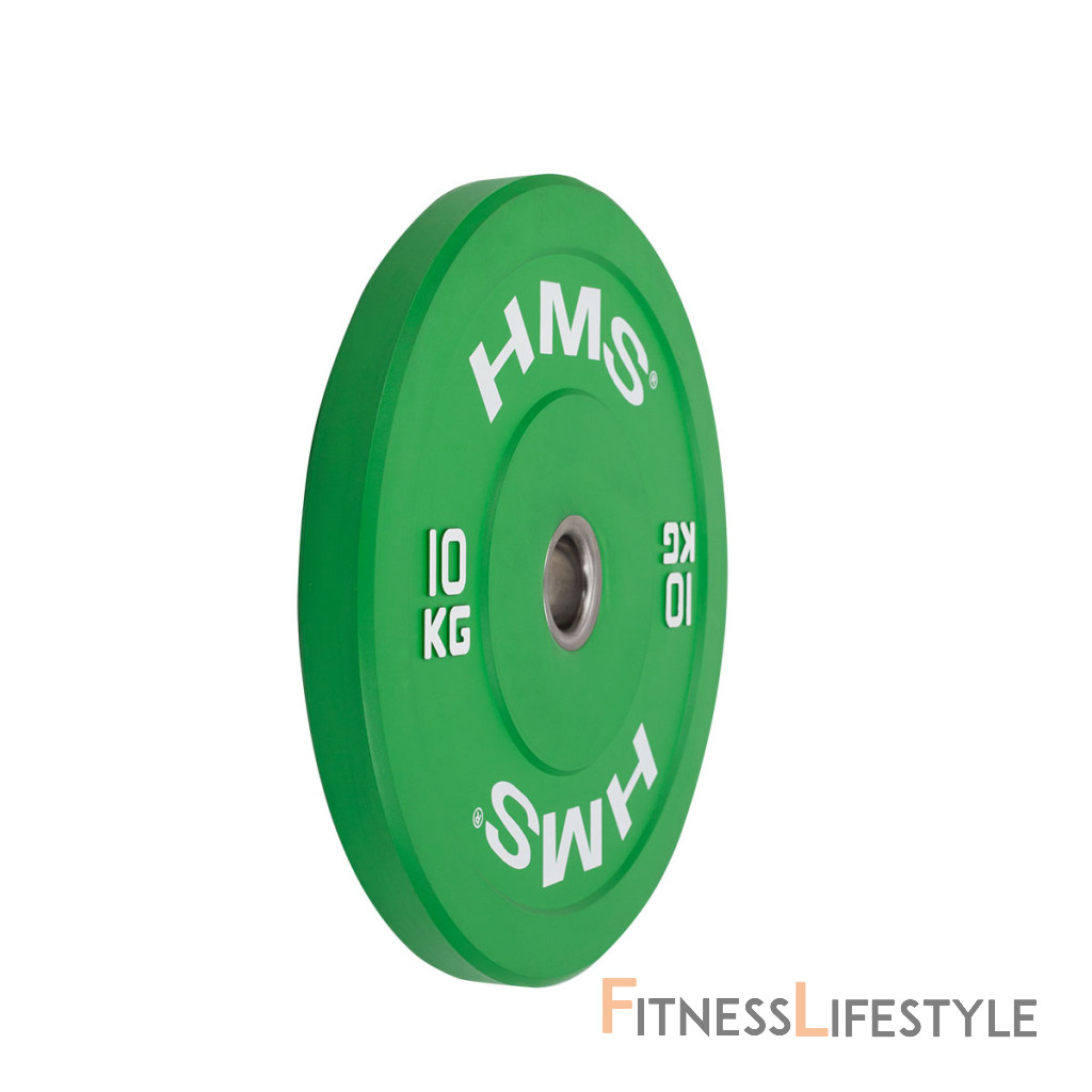 Farebný bumper kotúč HMS vhodný pre vzpieračský a funkčné tréning. Jeho hlavným parametrom je odolnosť, kedy aj po hodu z veľkej výšky, zostane kotúč aj podložie bez známky poškodenia. Kotúč je určený pre olympijské osi s priemerom tŕňov 50 mm a je sfarbený podľa závodných parametrov.
