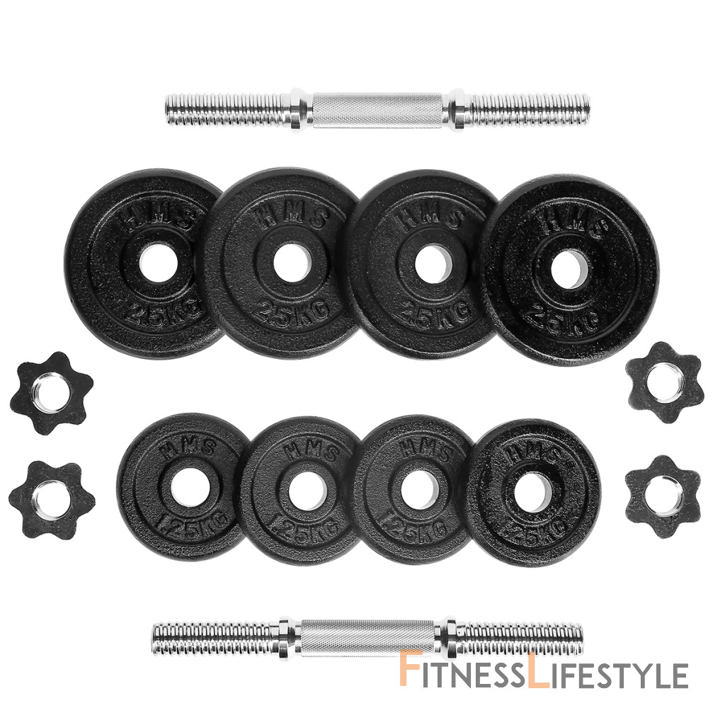 Sada jednoručných činiek v kufríku. Kufrík obsahuje 2 jednoručné hriadele, sadu čiernych kotúčov. 4 kusy matiek. Vďaka balenie v plastovom uzatvárateľnom kufríku, možno činky jednoducho prenášať a skladovať.