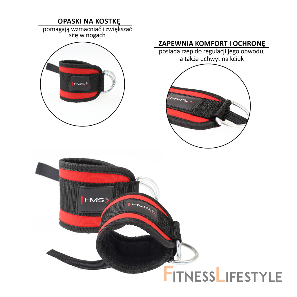 Popruh na členok HMS je miniatúrny cvičebná pomôcka, vhodná na precvičenie adduktory, abduktory, hamstringov a zadku. Popruh sa dá pripevniť k posilňovacej veži a tiež k rôznym expandérom.