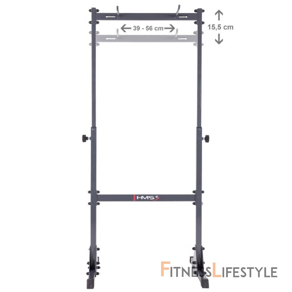 Stojan HMS Premium STR14 je navrhnutý pre odkladanie štúdiových, fitness a rozmernejších jóga podložiek. Stojan má nastaviteľnú výšku a rozstup odkladacích tŕňov, je teda univerzálny pre všetky rozmery podložiek. STR14 je vyrobený s ohľadom na bezpečie užívateľov i odkladaného náradia.