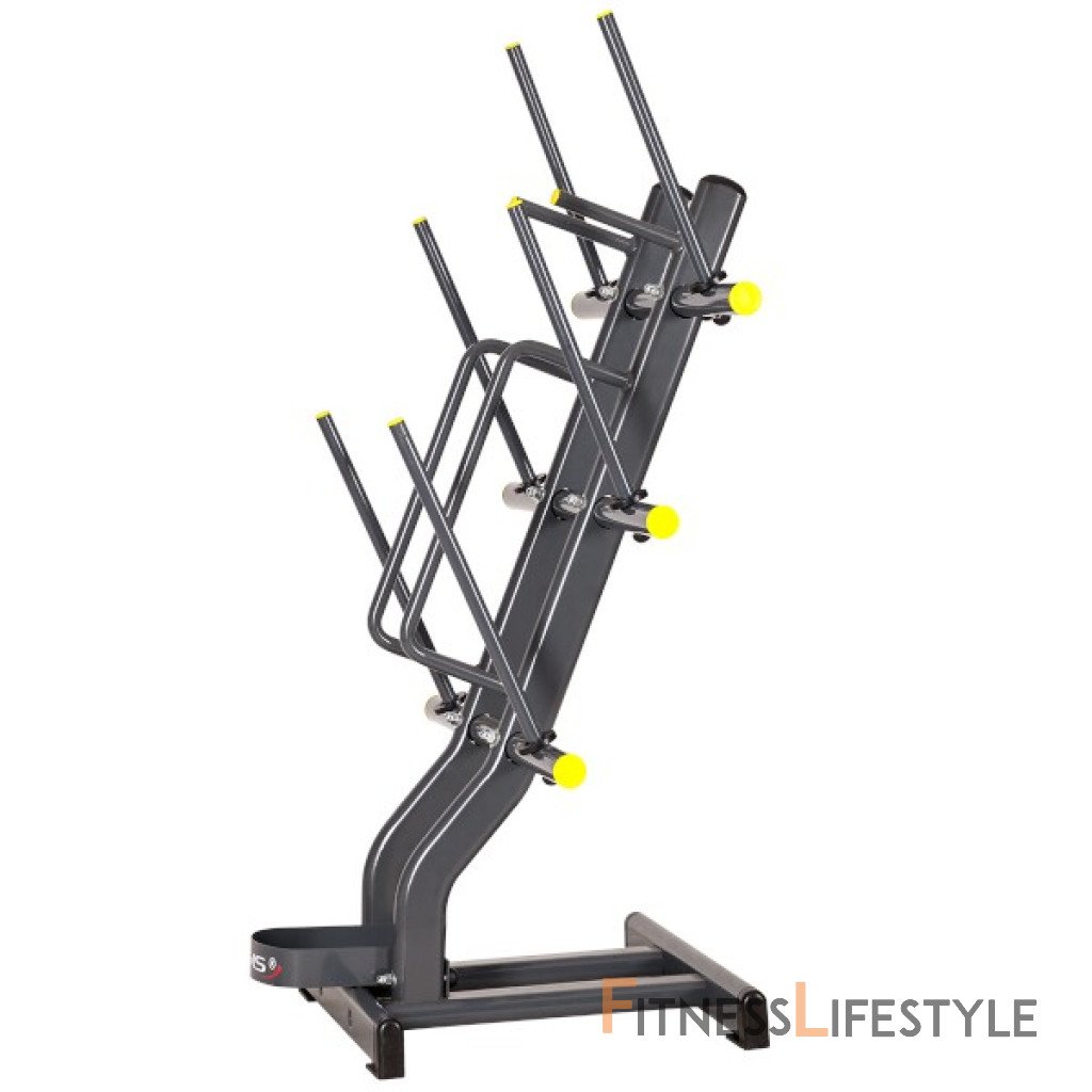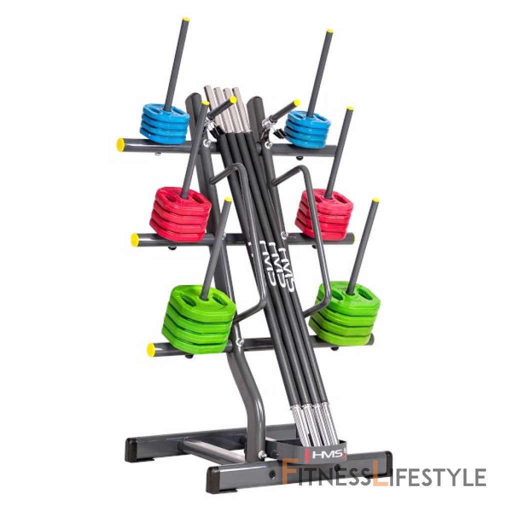 Stojan HMS Premium STR16 je navrhnutý pre prehľadné a pohodlné odkladanie hriadeľov a tanierov pre Body Pump. Stojan je vybavený priestorom pre osi, 6-tich tŕne pre kotúče a 2-mi tŕne pre zámky. STR16 je vyrobený s ohľadom na bezpečie užívateľov i odkladaného náradia.
