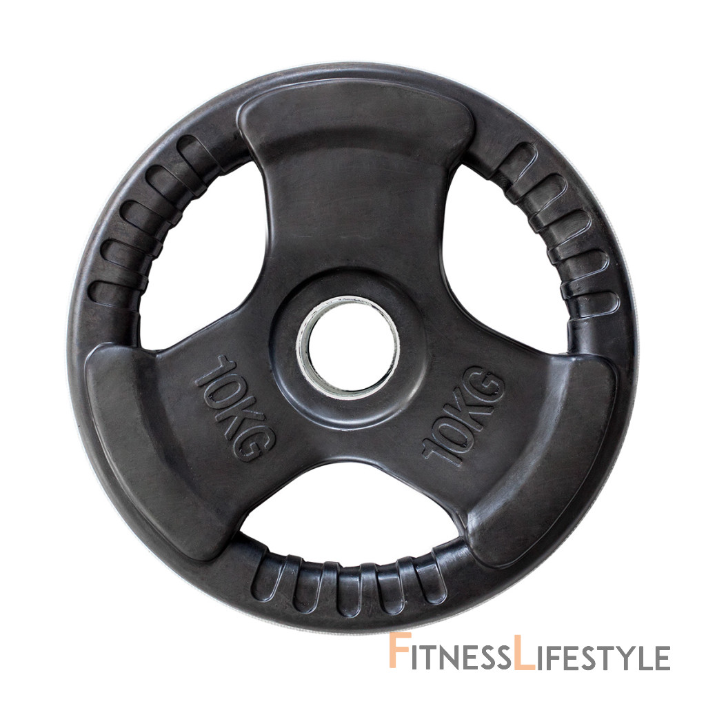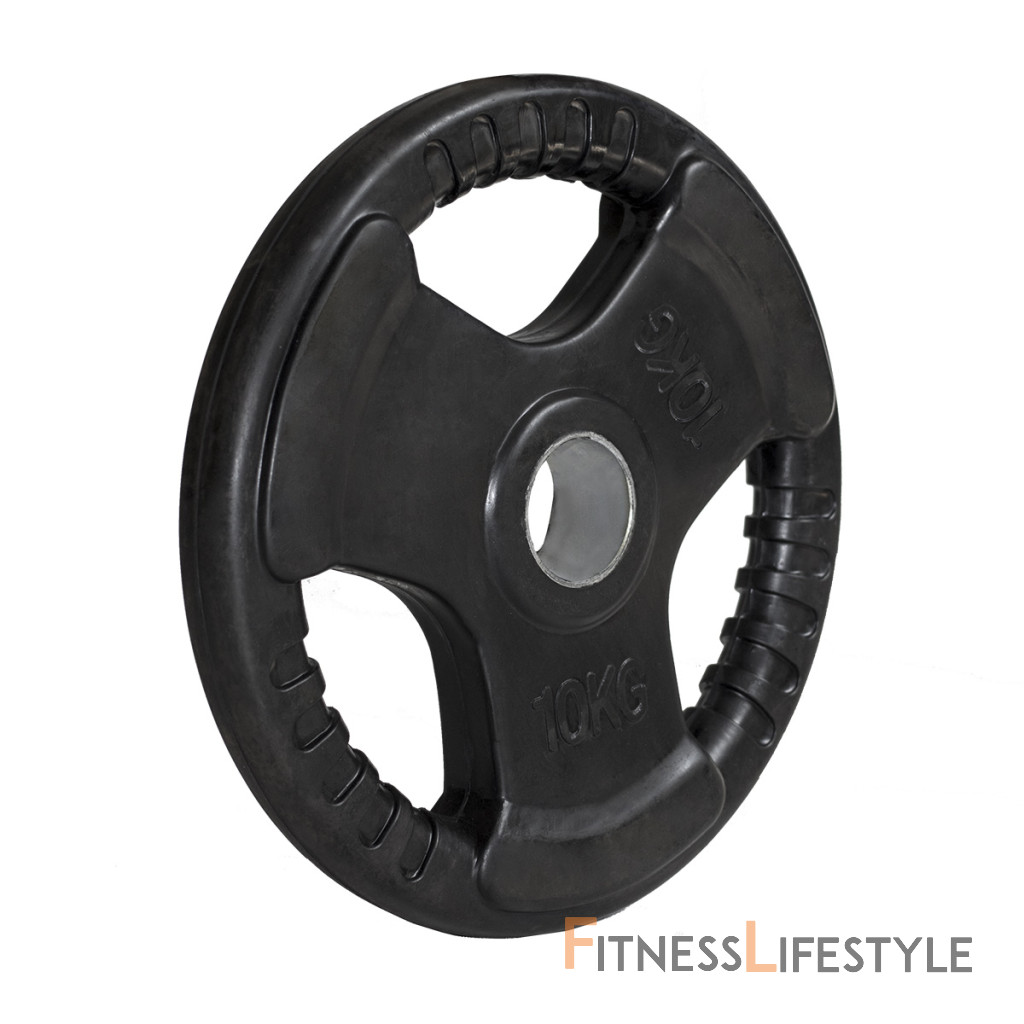 Olympijský, pogumovaný kotúč HMS Tri-grip je známkou kvality a precízneho prevedenia. Tento tanier má otvor s priemerom 50 mm, je teda vhodný pre všetky typy olympijských os. Závažie disponuje tromi držadlami pre jednoduchú manipuláciu a pogumovaný povrch predlžuje jeho životnosť.