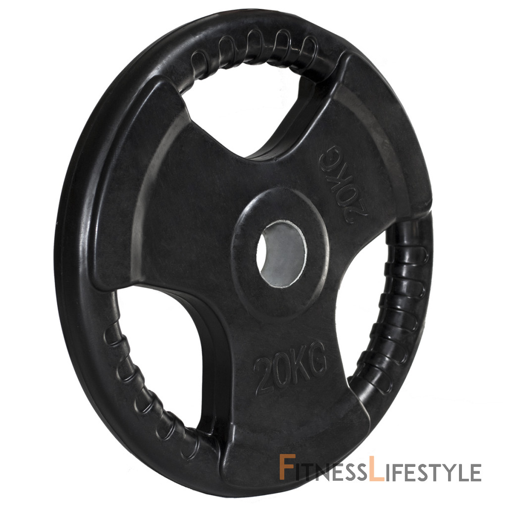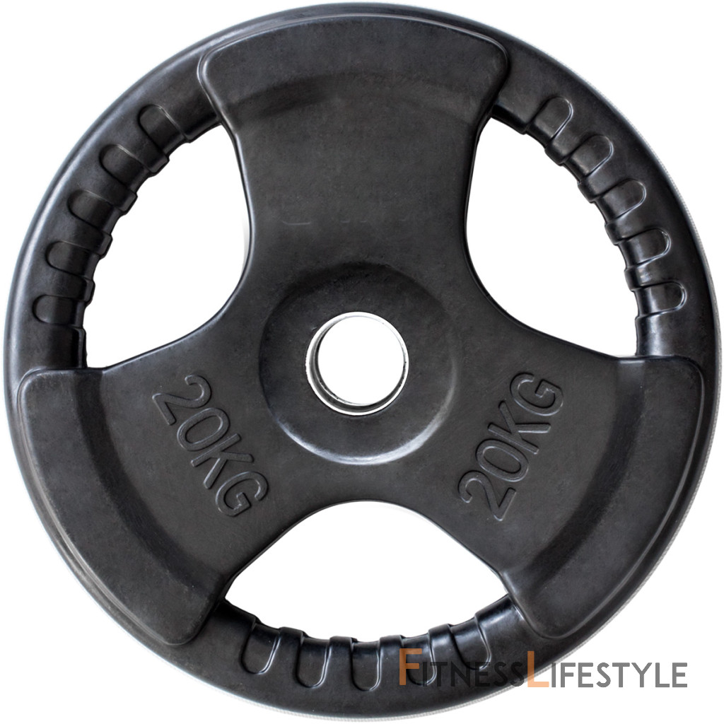 Olympijský, pogumovaný kotúč HMS Tri-grip je známkou kvality a precízneho prevedenia. Tento tanier má otvor s priemerom 50 mm, je teda vhodný pre všetky typy olympijských os. Závažie disponuje tromi držadlami pre jednoduchú manipuláciu a pogumovaný povrch predlžuje jeho životnosť.