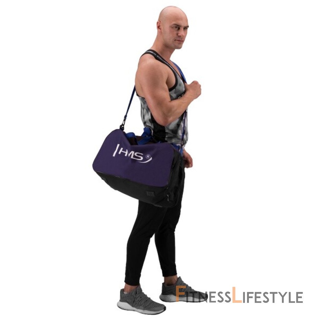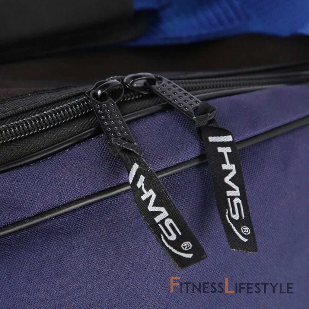 Športová taška HMS TRS3609 je vyrobená zo 100% polyesteru, ktorý je extrémne pevný a odolný. Hlavné vrecko má objem 36 litrov a zmestí sa do nej všetky potrebné vybavenie, ktoré potrebujete k svojmu tréningu. Dve menšie vrecká sú ideálne pre uloženie drobností ako sú kľúče, peňaženka, alebo mobilný telefón. Dve uši pre prenášanie v ruke sa dajú spájať manžetou na suchý zips. Popruh cez rameno má nastaviteľnú dĺžku a tašku si tak môžete prispôsobiť výške svojej postavy.