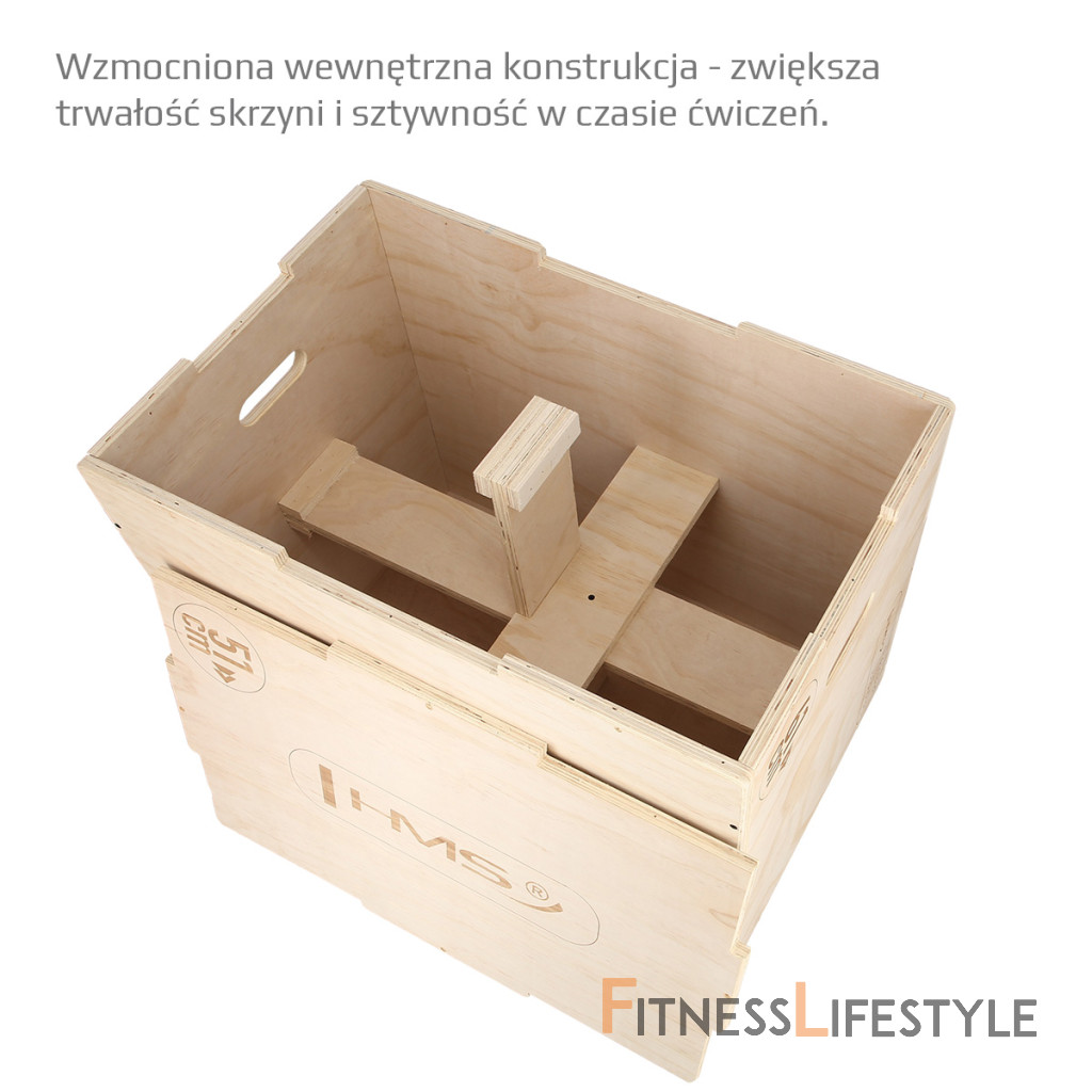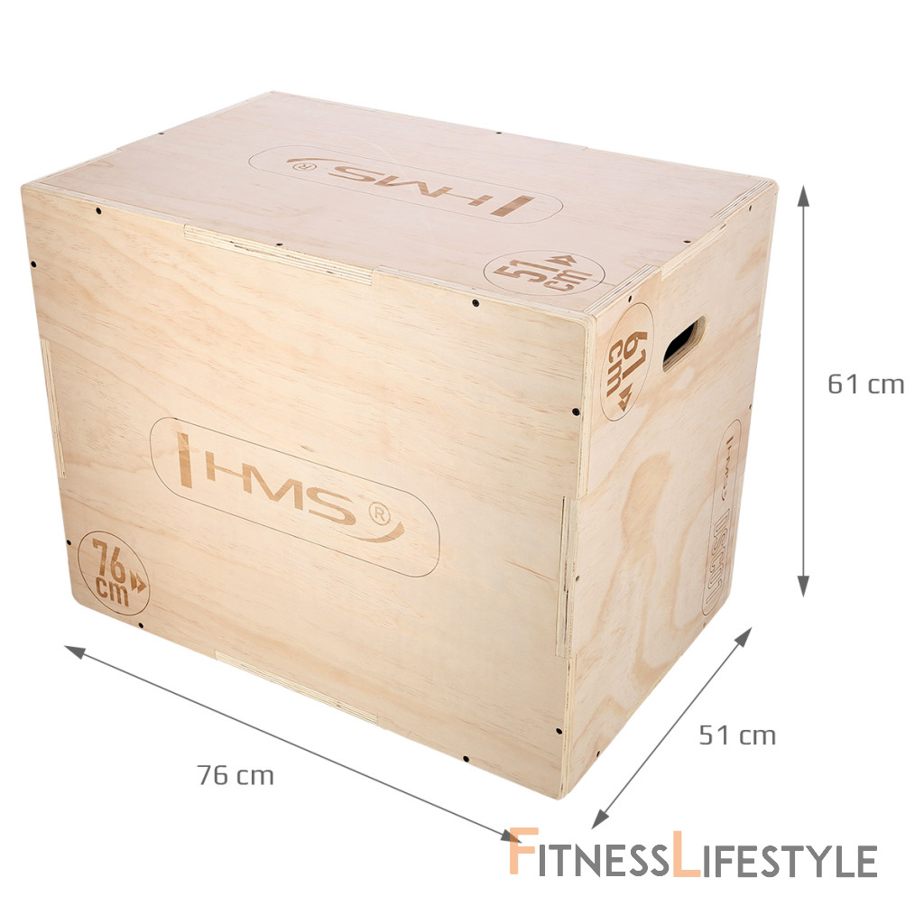 Plyometric Box HMS DSC01 je navrhnutý pre fitness tréning. Box je neoddeliteľnou súčasťou každého fitnescentra, pomoc profesionálnych športovcov alebo dokonca športovcov. Je vyrobená z 18 mm preglejky a má klasické rozmery 76,2 x 60,96 x 50,8 cm (30 x 24 x 20 palcov).